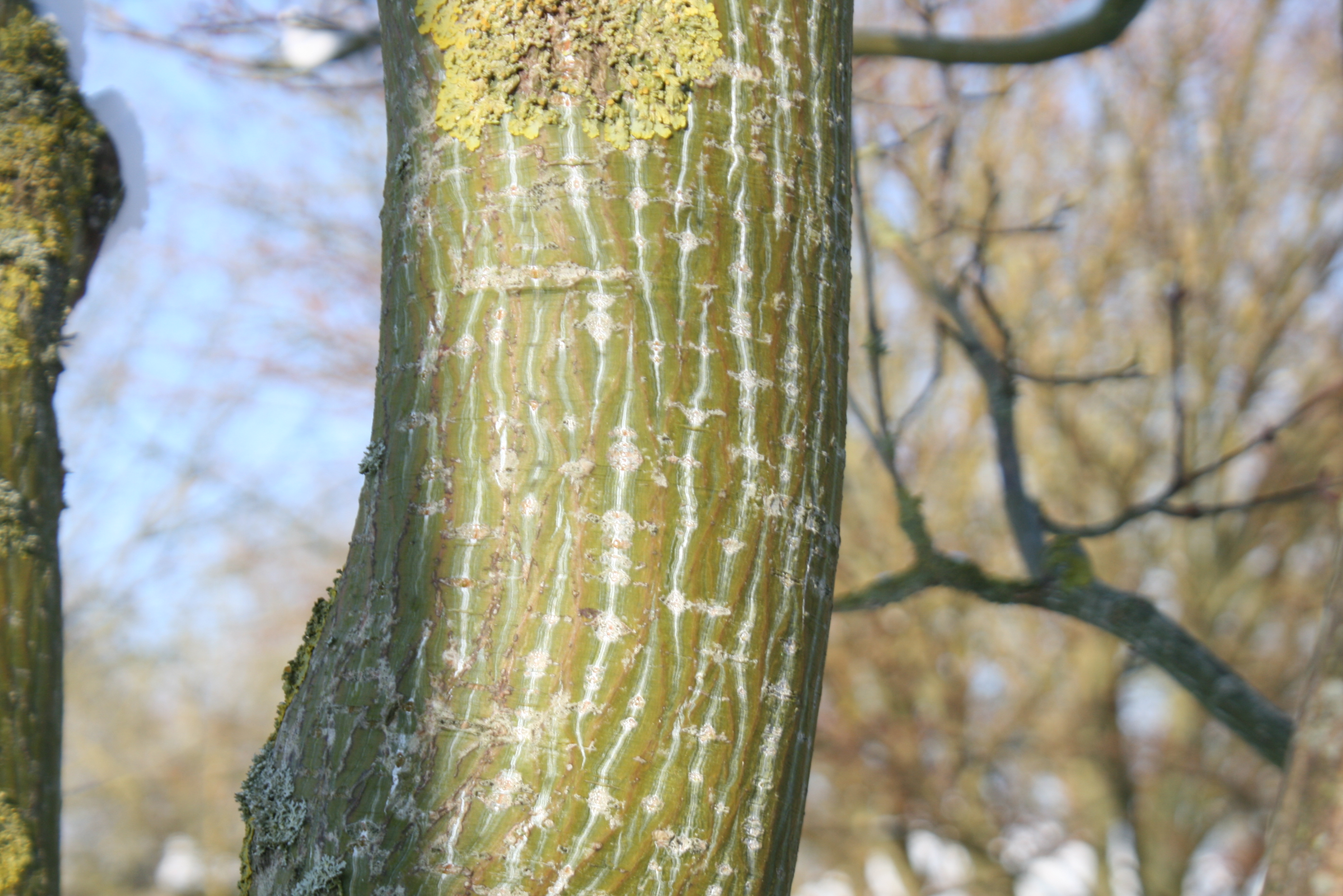 Weniger bekannt sind die wertvollen, seltenen Ahorne mit gemusterter Rinde, die in der Gruppe der "Schlangehaut-Ahorne" zusammengefasst werden. Dazu gehören zum Beispiel der Koreanische Schlangenhaut-Ahorn Acer tegmentosum, der Rote Schlangenhaut-Ahorn Acer capillipes, der Davids-Ahorn Acer davidii, der Streifen-Ahorn Acer pensylvanicum und der Rotnervige Schlangenhaut-Ahorn Acer rufinerve. Die Rinde der Schlangenhaut-Ahorne ist zwar von weitem nicht sehr auffällig, aber wer genauer hinschaut, erkennt die feine, weiße bis hellgraue Maserung auf der grünlichen Rinde, die sehr interessante Muster bildet.