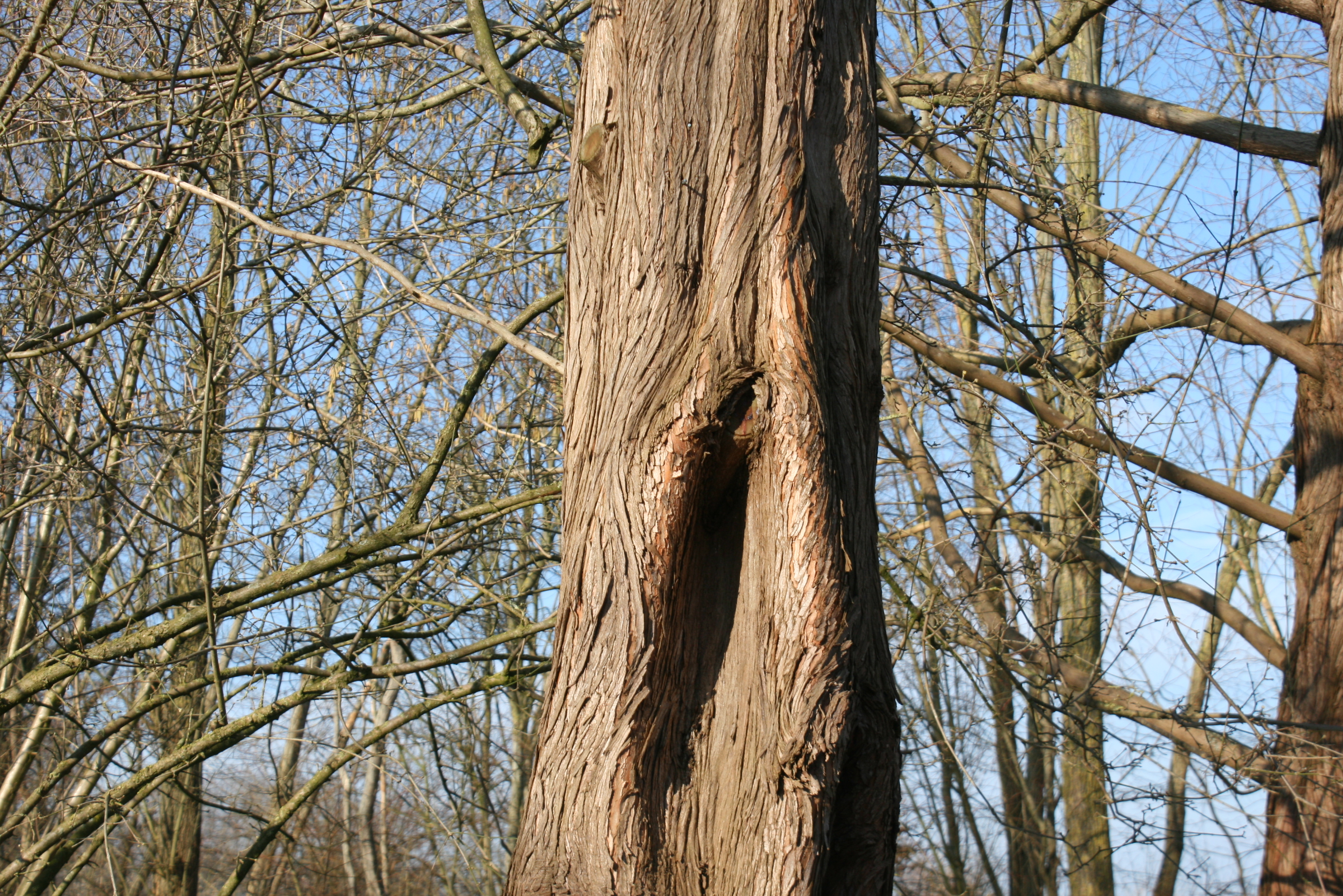 Neben Pflanzen, die durch die Oberfläche ihrer Rinde zieren, gibt es auch Bäume, die interessant geformte Stämme besitzen. Dazu gehören die bei uns heimische Hainbuche oder Weißbuche Carpinus betulus sowie der Urwelt-Mammutbaum Metasequoia glyptostroboides. Beide bilden wellig-wulstige, knorrige Stämme, die als "spannrückig" bezeichnet werden. Beim Urwelt-Mammutbaum ist, ähnlich wie bei vielen Zypressen, Scheinzypressen und Lebensbäumen, außerdem die rötlichbraune Rinde interessant, die in langen Streifen abblättert. Die Hainbuche dagegen hat eine glatte, silbergraue Rinde. Wegen ihres starken Wachstums sind sie allerdings beide für Gärten nur beschränkt geeignet.