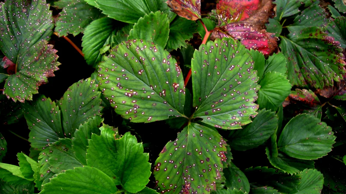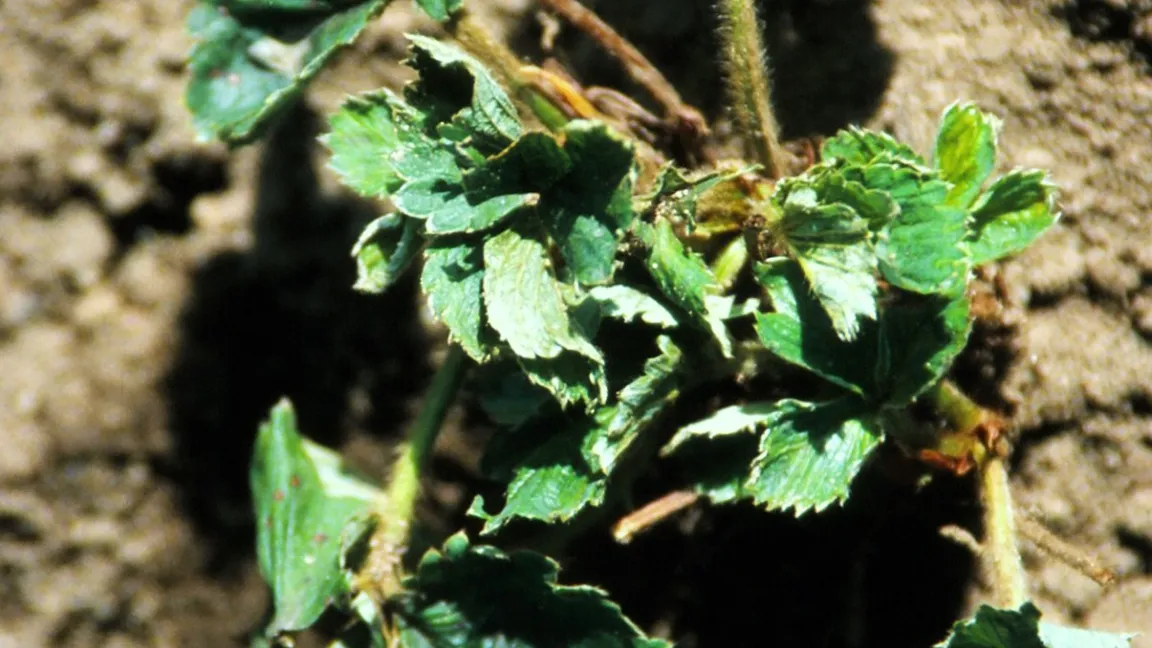 Die Erdbeermilbe (Tarsonemus pallidus) bewirkt, dass sich die Herzblätter kräuseln und klein bleiben. Der Weichhautmilbenbefall führt nicht immer zum Absterben, beeinträchtigt jedoch die Ertragsleistung. Feuchte Witterung und hohe Luftfeuchte kommen den mikroskopisch kleinen Erdbeermilben zupass. Zum Ende der Ernteperiode vermehren sie sich am stärksten. Eine Bekämpfung mit zugelassenen Insektiziden ist nach der Ernte besonders effektiv. Sind die Mutterpflanzenbestände befallen, dürfen keine Jungpflanzen entnommen werden.