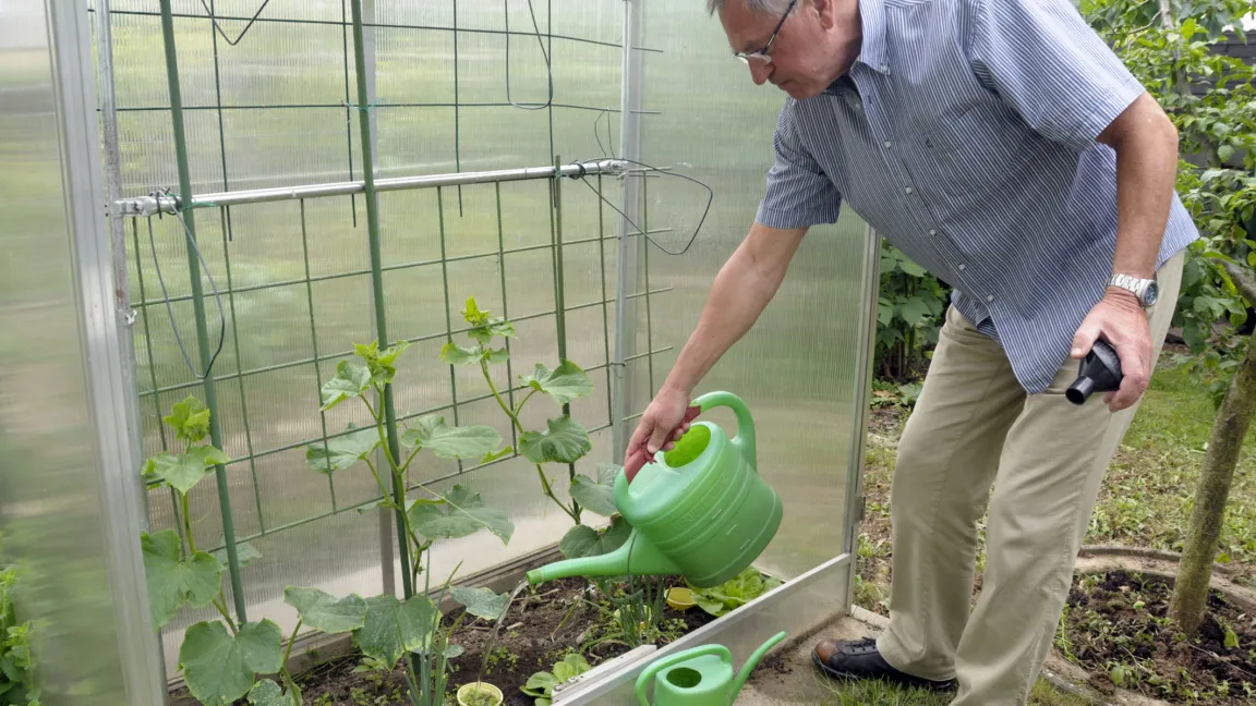 Das Wasser muss an die Wurzeln. Ein einfacher Trick hilft. Man gräbt einfache Plastikbecher oder kleine Tontöpfe ohne Boden neben den Pflanzen ein wenig ein und führt an diesen Stellen das Wasser zu. Die Pflanzen danken es mit einem kräftigeren Wurzelwachstum, weil sie sich das Wasser aus der Tiefe holen müssen. Günstig ist es auch, den Boden häufiger, aber nur oberflächlich, etwa fünf Zentimeter tief, zu häckeln. Eine alte Gärtnerregel sagt: Dreimal Hacken erspart einmal Gießen.