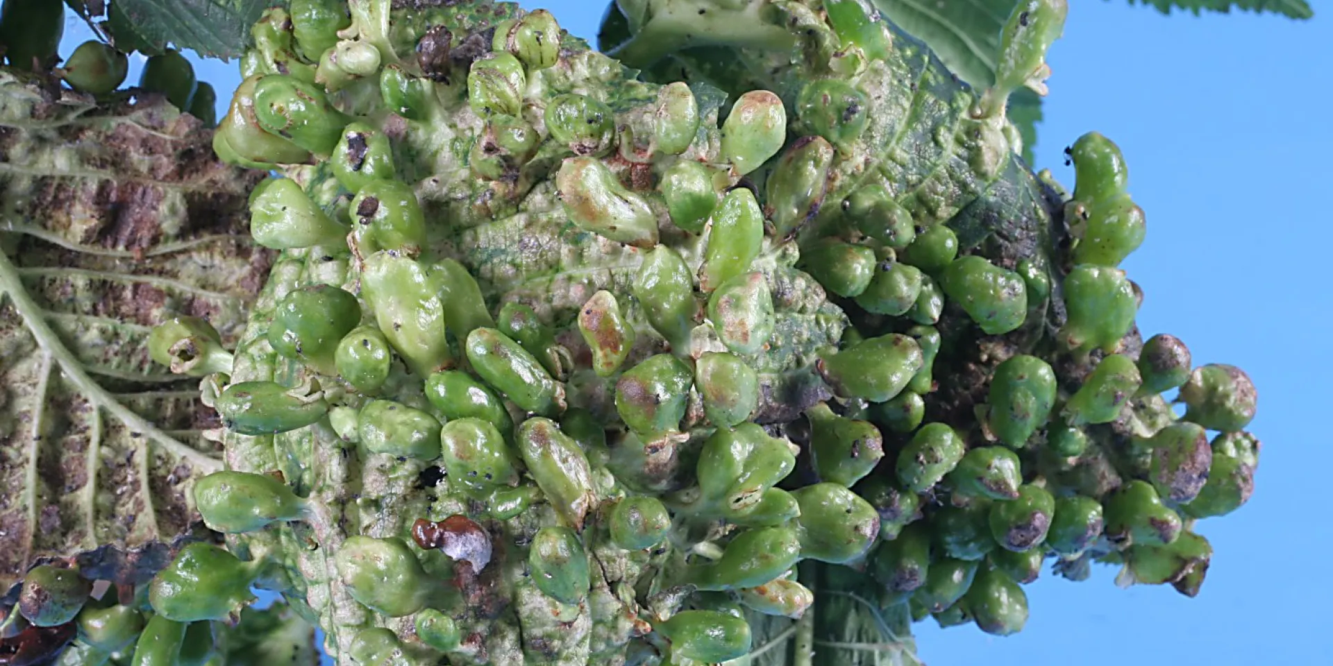 Ulmenblattläuse lassen Blätter verkrüppeln