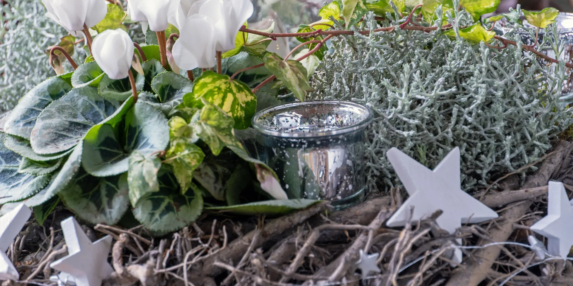 Alpenveilchen im weihnachtlichen Arrangement. Foto: iStock