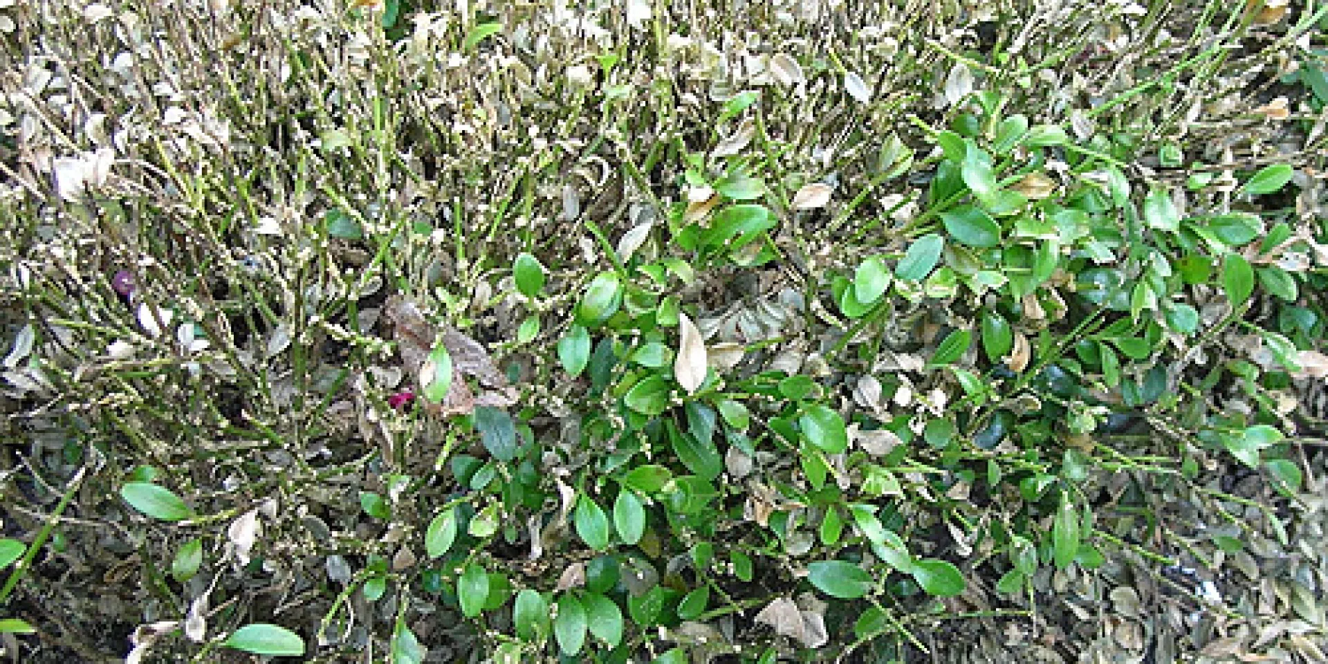 Das Buchsbaumsterben kommt wahrscheinlich aus England. Dort ist es seit 1994 bekannt. Von der Insel gelangte der Schadpilz nach Belgien und Frankreich und schließlich 2004 nach Nordwestdeutschland. „Der erste Nachweis von Cylindrocladium buxicola gelang an Pflanzen aus einer Baumschule in der Nähe von Oldenburg“, erinnert sich Dr. Thomas Brand, Pflanzenschutzexperte bei der Landwirtschaftskammer Niedersachsen, „mittlerweile hat die Krankheit ein verheerendes Ausmaß angenommen. In ganz Deutschland sind Buxuspflanzungen betroffen.“