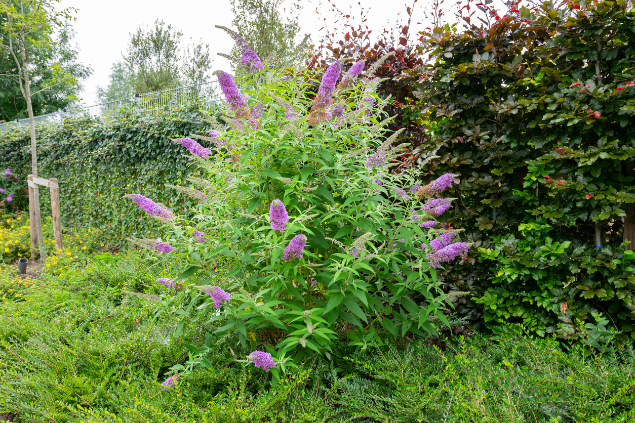 Sommerflieder ist nicht mit dem Echten Flieder verwandt und wird auch Schmetterlingsflieder genannt. Ab Juli zeigt er seine üppige Blütenpracht, die viele bunte Falter anzieht.