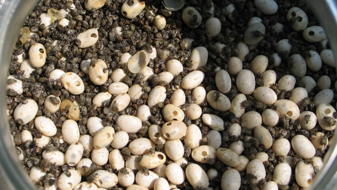 Kreisrunde Fraßlöcher in Hülsenfrüchten verraten den Speisebohnenkäfer. Seine Larven bohren sich in die weißen oder roten Bohnen ein und höhlen sie aus. Bisher war der Vorratsschädling in Bohnen aus Mittel- und Südamerika gefürchtet. Inzwischen hat der Käfer auch hierzulande die jungen Bohnenpflanzen in Gärten und auf Feldern als Eiablageplatz entdeckt.Im Freiland