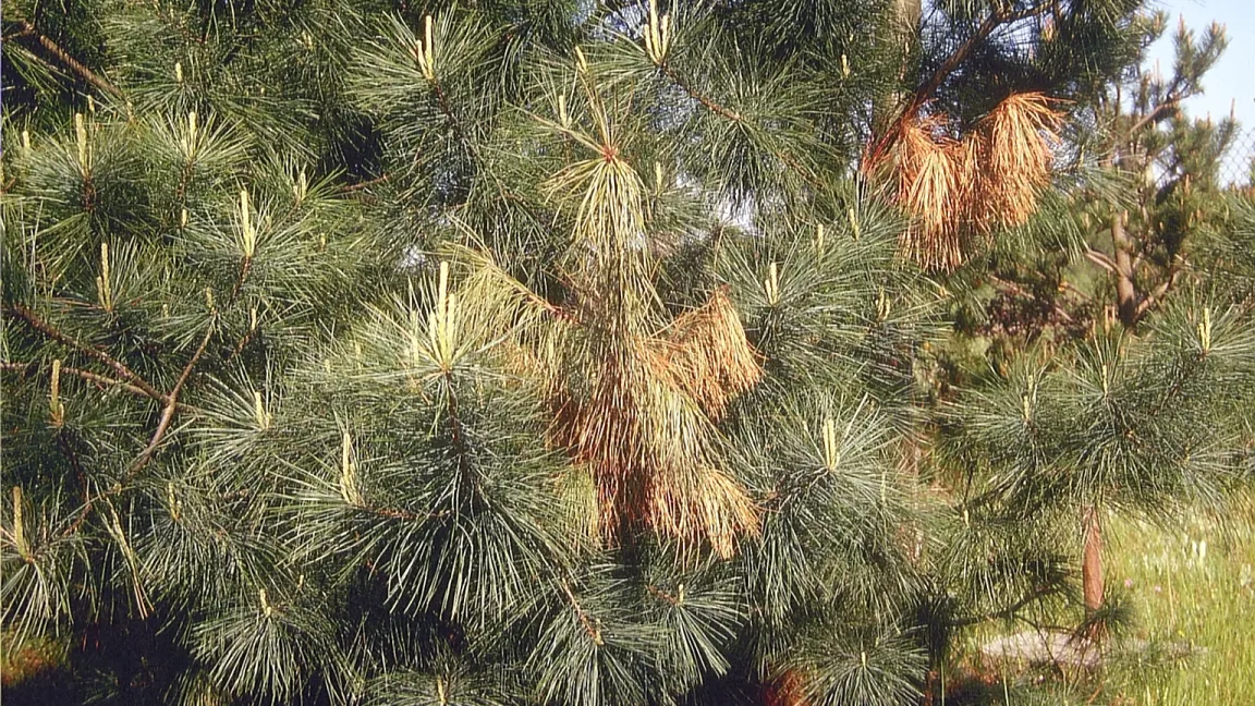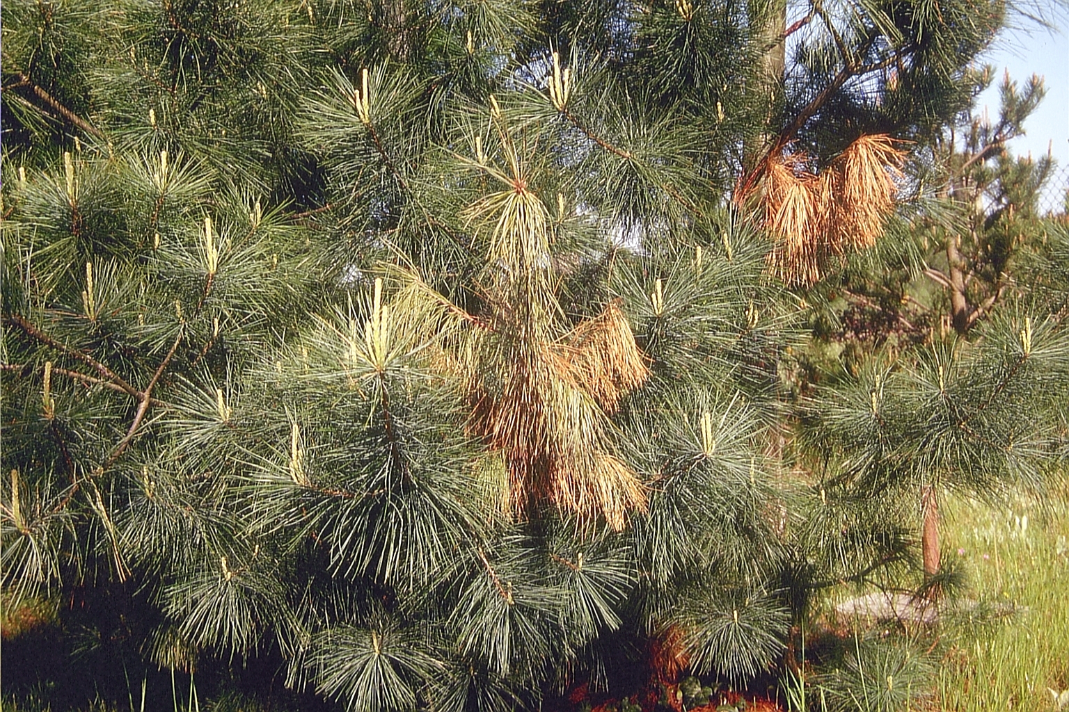 Wenn die Blätter der Schwarzen Johannisbeere etwa ab Juni kleine, gelbliche Flecken, auf der Blattoberseite aufweisen und auf der Unterseite zunächst winzige, hell- bis orangegelbe Pusteln, später etwa einen Millimeter lange, gelbbraune Säulchen zu finden sind und wenn womöglich die Johannisbeersträucher schon im August entlaubt sind, dann ist wahrscheinlich ein Vertreter der wirtswechselnden Rostpilze am Werk.Der Weymouthskiefernblasenrost (Cronartium ribicola) [Peridermium strobi]ist seit einigen Jahren häufiger bei uns zu beobachten. Er befällt sowohl die Weymouthskiefer als auch Ribes*, vor allem Johannisbeer-Arten. An diesen heißt die Krankheit, die er hervorruft, Johannisbeersäulenrost. Die Weymouthskiefer sucht der pilzliche Erreger nur zum Überwintern auf. Trotzdem sind seine Schadwirkungen bei Kiefern vielgesichtig und verheerend. Die Bekämpfung ist schwierig.