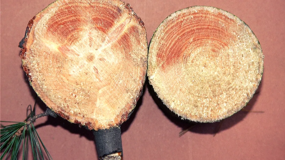 Im Frühjahr, etwa ab Mai, zeigen sich bei den Kiefern bis 20 cm lange angeschwollene Trieb- oder Zweigteile, vor allem in der Nähe von Astquirlen. Im Bereich der Befallsstellen ist die Rinde rauh, rissig, schorfartig und mit Harz überzogen. Die Nadeln sind stumpf graugrün, sie verfärben sich braun und vertrocknen. Trieb- und Zweigteile, die oberhalb der Befallsstelle liegen, sterben langsam ab. Der pilzliche Erreger aber wächst weiter in die Rinde und dringt sogar in den Holzteil ein. An den angeschwollenen Gehölzteilen brechen jedes Jahr aufs Neue zahlreiche hellgelbe, blasenartige Gebilde hervor. Diese platzen bald auf und entlassen ein gelbliches Sporenpulver. Die Sporen wechseln zu ihren Sommerwirten, den Ribes-Arten und rufen dort den Johannisbeersäulenrost hervor.
