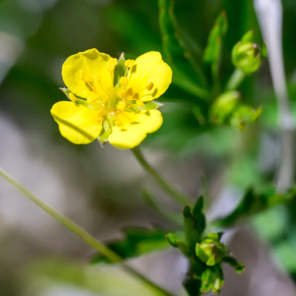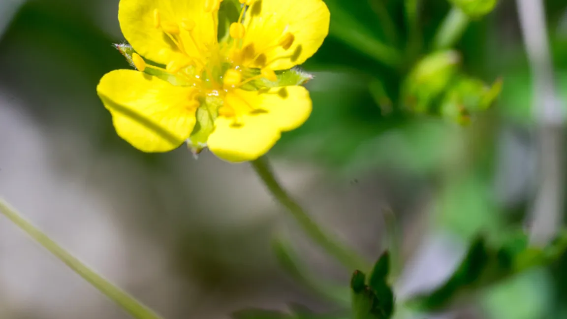 Die Blutwurz blüht zwar gelb, aus ihrem Wurzelstock tritt aber beim Anschneiden „blutroter Saft“ heraus, der eine heilsame Wirkung hat. Foto: Shutterstock/I. Rottlaender