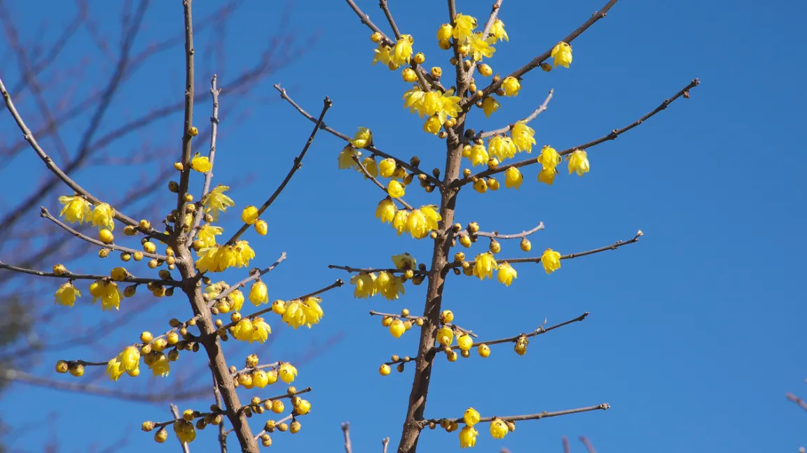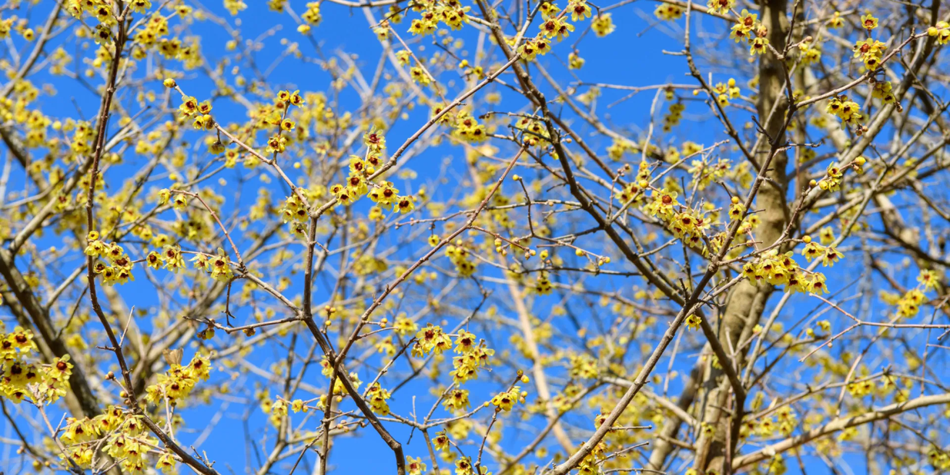 Die Chinesische Winterblüte (Chimonanthus praecox) gehört zur Familie der Gewürzstrauchgewächse und stammt aus den Gebirgswäldern im Osten Chinas. Anders als dort wächst sie in Europa nicht als großer Strauch, sondern wird höchstens 3 Meter hoch und 2 Meter breit. Seit dem 18. Jahrhundert verbreitete sich das Gehölz in Parks und Grünanlagen, aber auch in privaten Gärten. Im eher tristen Grau der Wintertage sind die oft gelben Blüten sonnige Lichtblicke. Die ursprüngliche Art der Winterblüte trägt allerdings cremeweiße bis gelbliche Blüten, deren kleine innere Blütenblätter dunkelrot gefärbt sind.