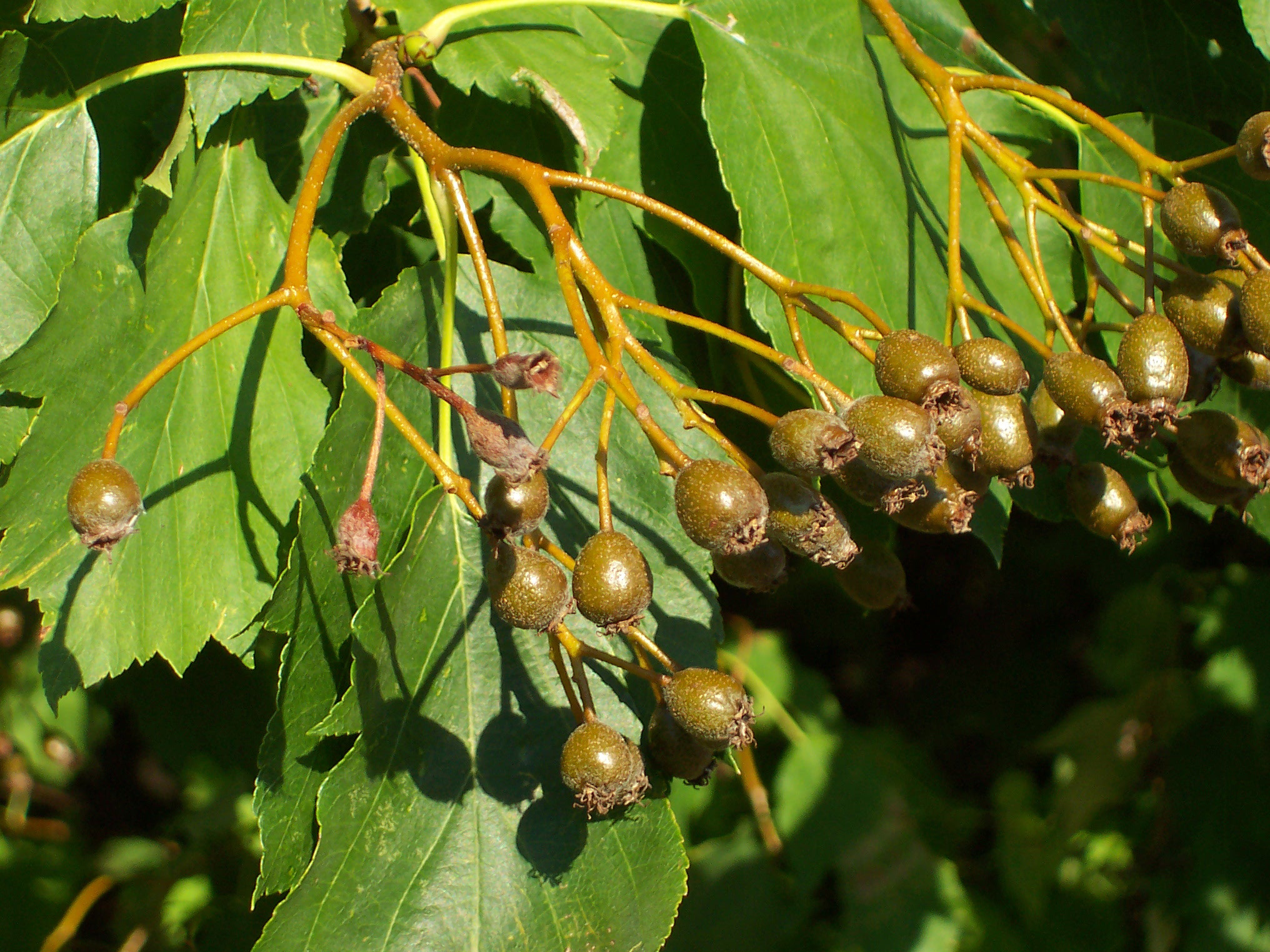 Hinter dem Namen Elsbeere steckt ein stattlicher Baum, der eines der teuersten Hölzer liefert. Seine Früchte nutzte schon Martin Luther als Heilmittel gegen Durchfall und Ruhr.Die wärmeliebende Elsbeere (Sorbus torminalis) wächst vor allem an sommerwarmen Hängen in Eichen- und Hainbuchenwäldern. Wenn die bis 20 Meter hohen Bäume im Mai und Juni blühen, sammeln sich auf ihren weißen Blüten in zehn bis zwölf Zentimeter breiten, lockeren Trugdolden, Käfer, Hummeln und Wildbienen, die sich am Nektar laben. Die zunächst olivgrünen zehn bis 18 Millimeter langen Früchte färben sich mit ihrer Reife im Oktober rötlichgelb. Ihre Schale ist hell punktiert durch zahlreiche Korkwarzen. Um genießbar zu werden, müssen die teigig-mehligen Früchte die ersten Nachtfröste erlebt haben. Sie können dann zu allerlei Leckerem wie Gelee, Marmelade, Saft oder auch etwa mit Wodka zu einem Aufgesetzten veredelt werden. Vögel und Säugetiere fressen die Früchte und verbreiten sie. Dieser Vorgang ermöglicht erst die Keimung. Im Herbst zählt die Elsbeere, die zu den Rosengewächsen gehört, mit einer orangeroten bis lederbraunen Färbung ihrer ahornartig gelappten Blätter zu den buntesten unserer Laubbäume.