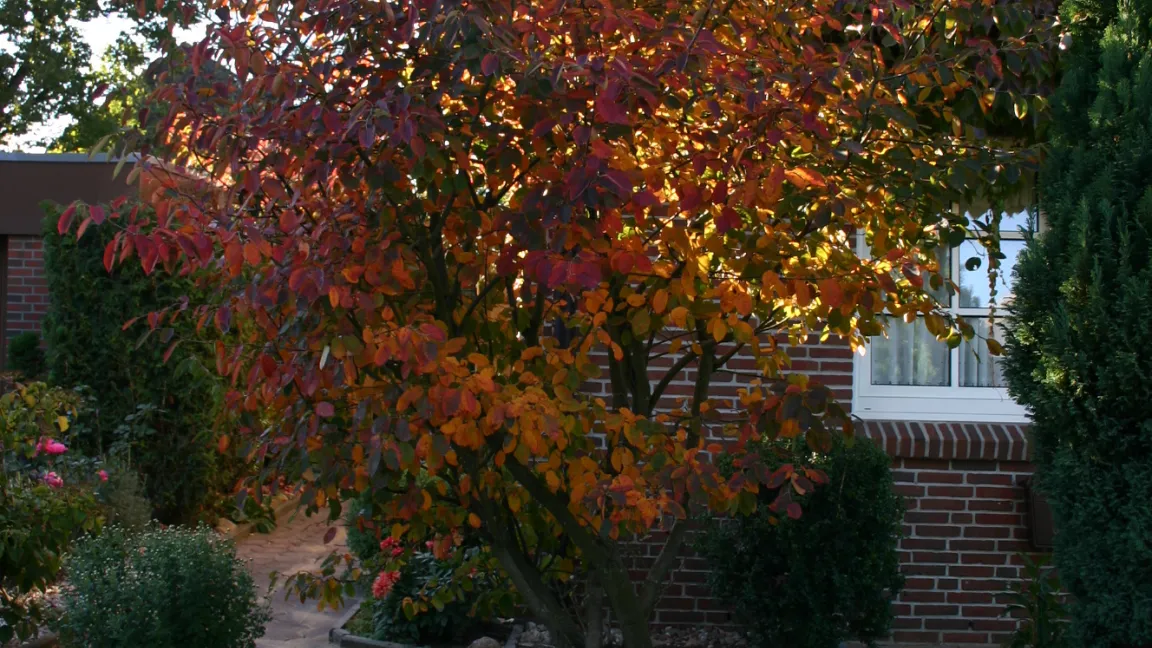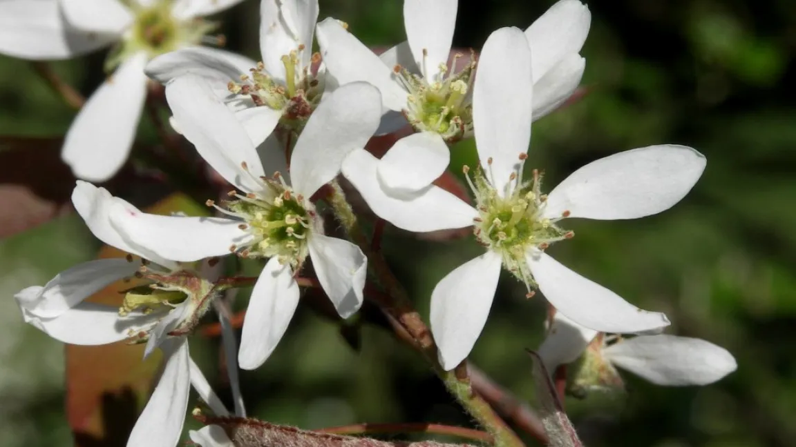 Die Kupfer-Felsenbirne, die bisweilen auch als Korinthenstrauch bezeichnet wird, weil ihre vertrocknenden Früchte Rosinen ähneln, macht es den Westeuropäern leicht, sie zu mögen. Das Ziergehölz hat zu jeder Jahreszeit etwas zu bieten. Im Frühjahr treiben zunächst die Blätter aus. Dabei setzt der Strauch einen interessanten Kontrast zum zarten Frühjahrsgrün anderer Pflanzen. Seine Blätter erscheinen zu Beginn kupferfarben, bisweilen rötlich-braun. Damit bilden sie einen attraktiven Hintergrund für die im April und Mai austreibenden Blüten. Der Strauch entwickelt zarte, weiße Blüten mit fünf schmalen Kronblättern, die in übergeneigten Trauben zu etwa zehn Blüten am Strauch hängen. In dieser Phase ist der Strauch ein Eldorado für Bienen. Diese müssen sich jedoch sputen, denn schon im Juni reifen die ersten Früchte. In diesem Reifungsprozess wechselt der Strauch die Farbe. Die Blätter werden grün. Die bis zu einen Zentimeter großen Früchte locken mit ihrer hellen, purpurroten Farbe in Scharen Vögel an. Später werden sie blauschwarz und ähneln Heidelbeeren. Im Herbst wechselt die Felsenbirne erneut ihr Kleid. Die Blätter leuchten nun in prächtigem Gelb, Orange oder Rot.