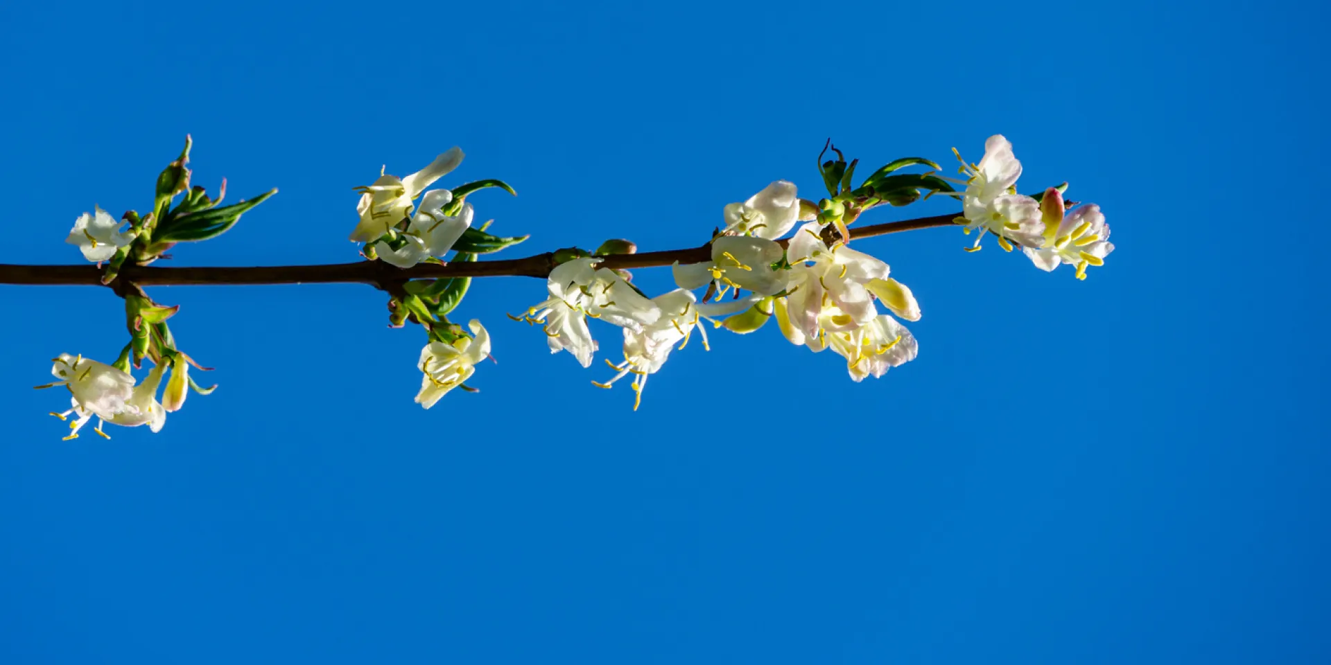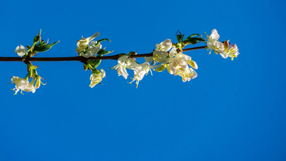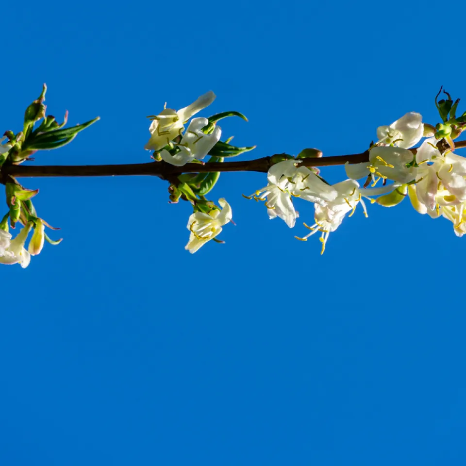 Wenn sich viele andere Gehölze noch im winterlichen Graubraun zeigen, setzt die Winter-Heckenkirsche ihre ganz eigenen Akzente: Ihre kleinen, cremeweißen Blüten öffnen sich bereits ab Januar und verströmen einen honigartigen Duft.