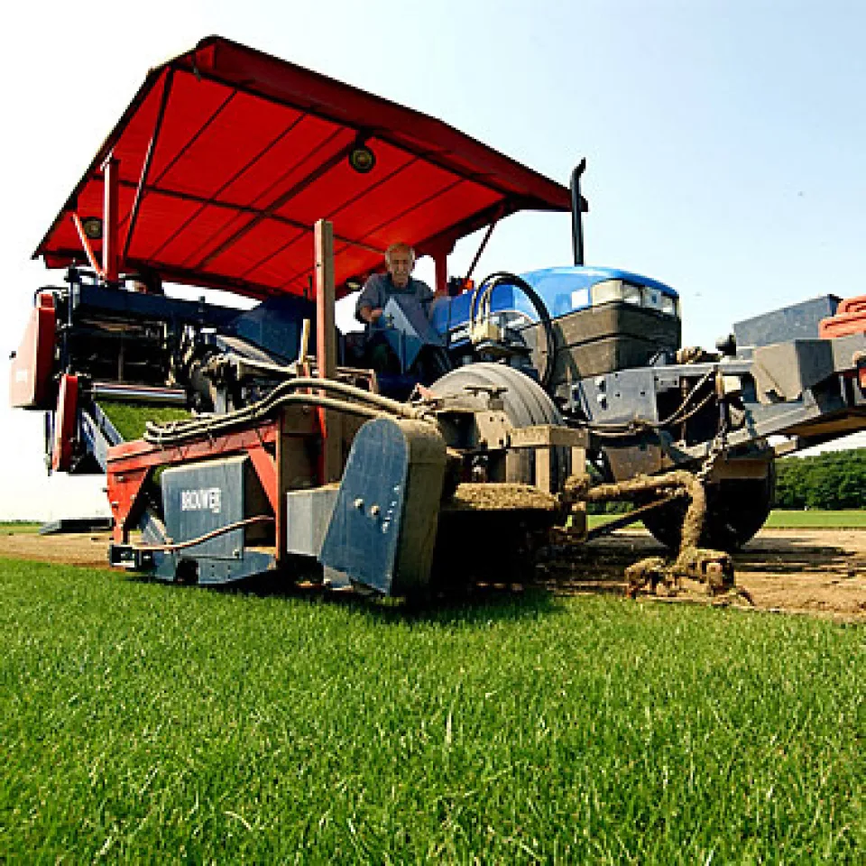 In Fußballstadien verlegt man Rasenstücke, die 1,20 x ungefähr 20 Meter groß und etwa 400 Kilogramm schwer sind. Laut Frankfurter Allgemeine Zeitung wurden ungefähr 550 Rollen für die Commerzbank-Arena angeliefert und von Spezialmaschinen wieder entrollt. Auf dem neuen Rasen könnte man zwar sofort spielen. Aber um Beschädigungen möglichst zu vermeiden, sollte das Wurzelwerk mit dem Untergrund verwachsen sein.