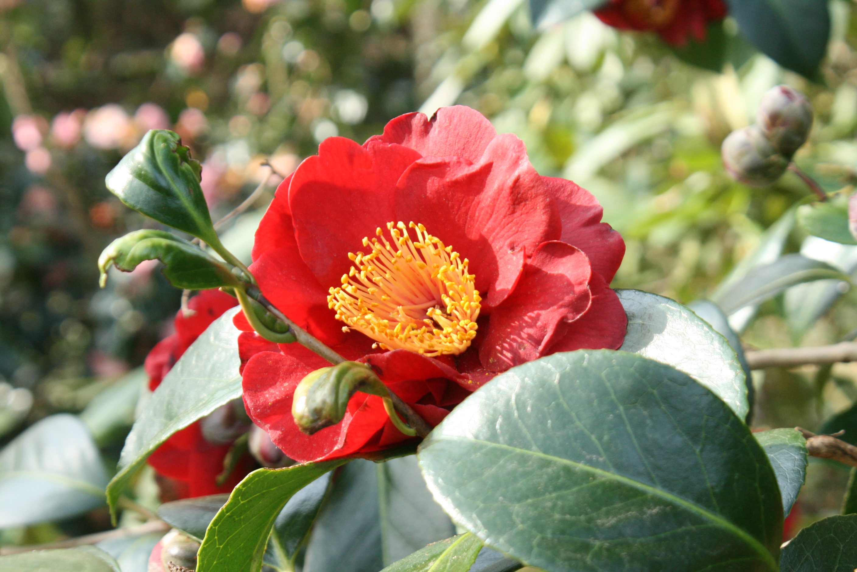 Zu den Kamelien gehört ein großes Sortiment an Sträuchern, die mit leuchtenden Blüten das Auge erfreuen. Allerdings wird aus den Blättern einer bestimmten Art davon, nämlich Camellia sinensis, auch Tee zubereitet. Benannt wurde die Gattung von Carl von Linné nach dem Mönch und Botaniker Georgius Josephus Camellus (Georg Joseph Kamel) aus Brünn. Dass sein deutscher Familienname mit nur einem "l" geschrieben wird, der lateinisierte aber mit zwei, erklärt übrigens den Unterschied zwischen der Schreibweise des botanischen (lateinischen) und des deutschen Gattungsnamens.