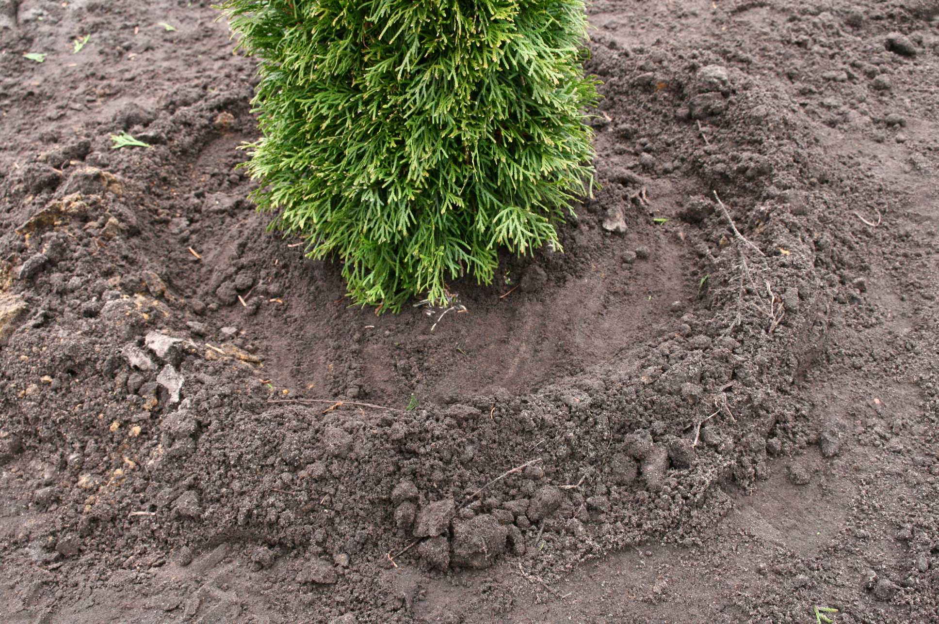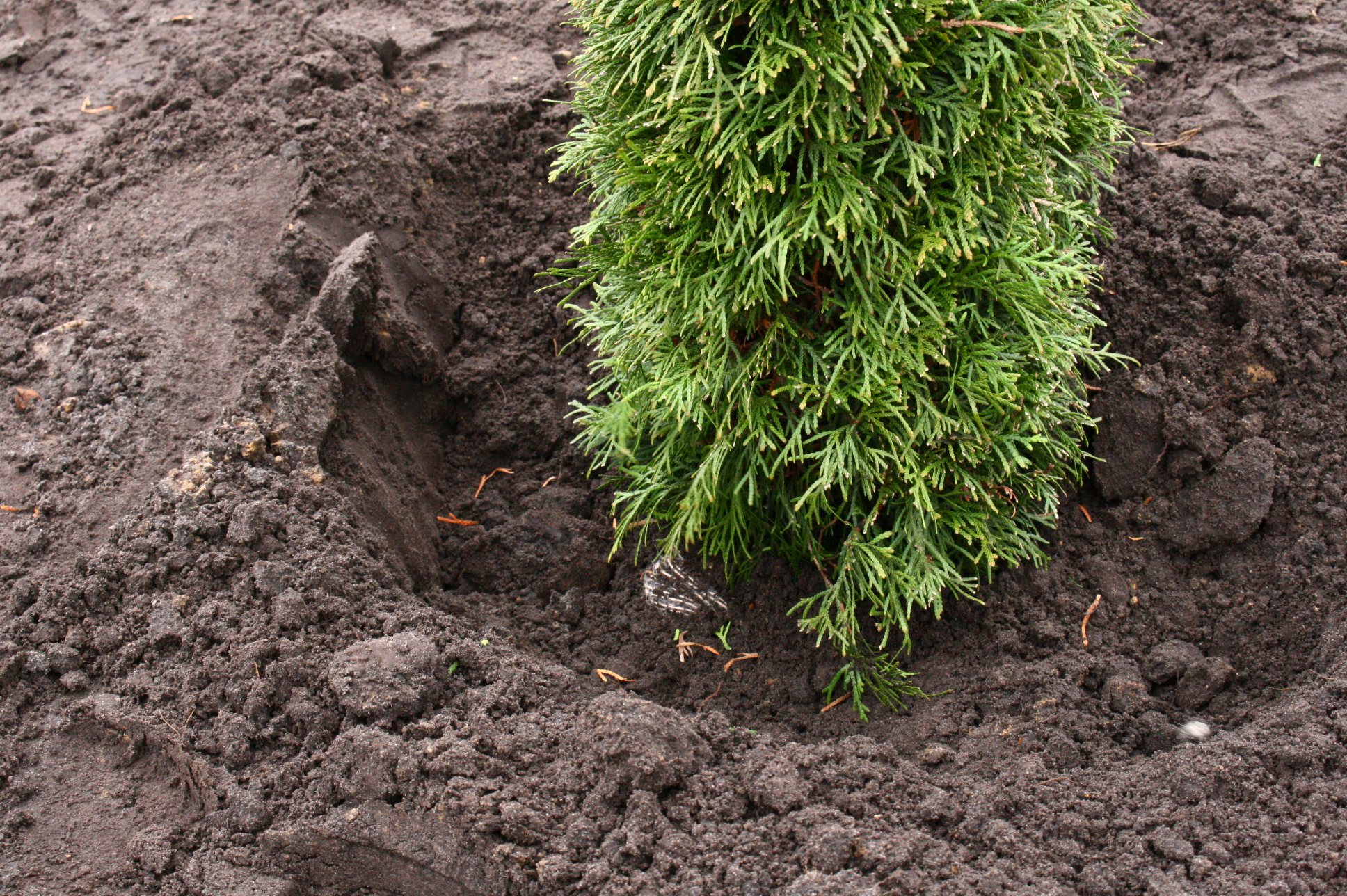 Diese Konifere steht viel zu tief im Pflanzloch. Foto: Heinrich Beltz