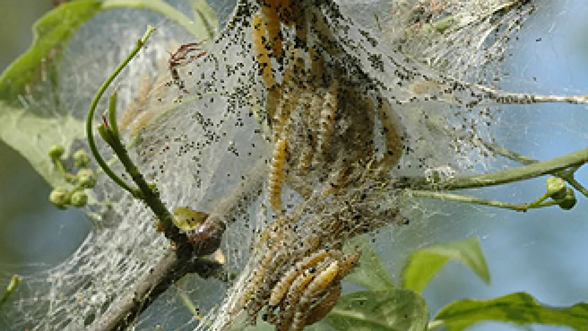 Die Raupen der Gespinstmotten können ganze Bäume mit ihren Gespinsten überziehen und sich unangreifbar machen.
