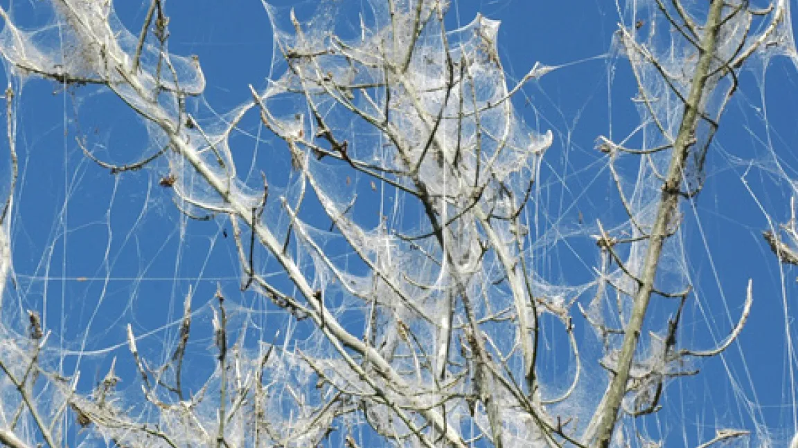 Gespenstische "Kunstwerke": Gespinstmotten verwandeln Bäume und Sträucher