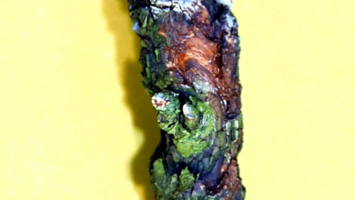 Andererseits können bei geringem Befall durch ein Ausschneiden der Befallsstellen bis tief in das gesunde Holz die Krankheiten eingedämmt und die Bäume noch leistungsfähig gehalten werden. Sofern sich die Rindenerkrankungen am betreffenden Gehölz noch nicht durch massives Absterben bemerkbar gemacht haben, ist bei einer Kontrolle der Gehölze unbedingt auf Veränderungen an der Rinde zu achten. Hier werden bei einem Befall eingesunkene, abgestorbene, manchmal auch weiche oder aufgeplatzte Rindenpartien sichtbar. Als Grundsatz muss in jedem Fall gelten, dass erkrankte Äste sofort herauszuschneiden sind, unabhängig davon, um welche Rindenkrankheit es sich handeln könnte – also nicht erst die Diagnose abwarten. Mit den Schnittmaßnahmen lassen sich noch weitere Schaderreger eindämmen. So sollten auch die vom Apfelmehltau befallenen Triebspitzen entfernt werden. Der pilzliche Erreger überwintert mit seinem Pilzmyzel in den Endknospen sowohl der Lang- und Holz- als auch der Kurz- und Fruchttriebe. Die befallenen Knospen sind im Winter relativ gut von den gesunden zu unterscheiden, sie sind schlanker als gesunde. Die Knospenschuppen sehen wie vertrocknet aus und sind etwas abgespreizt.