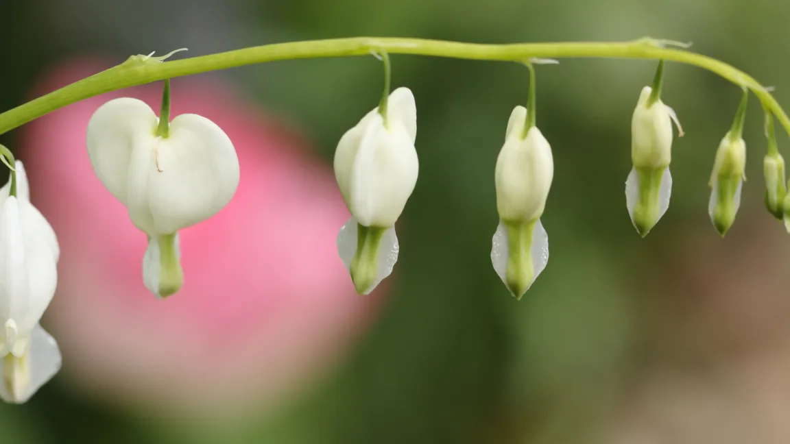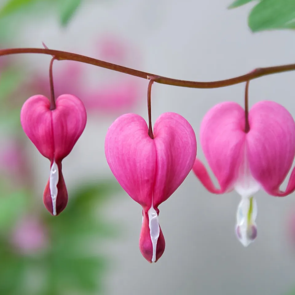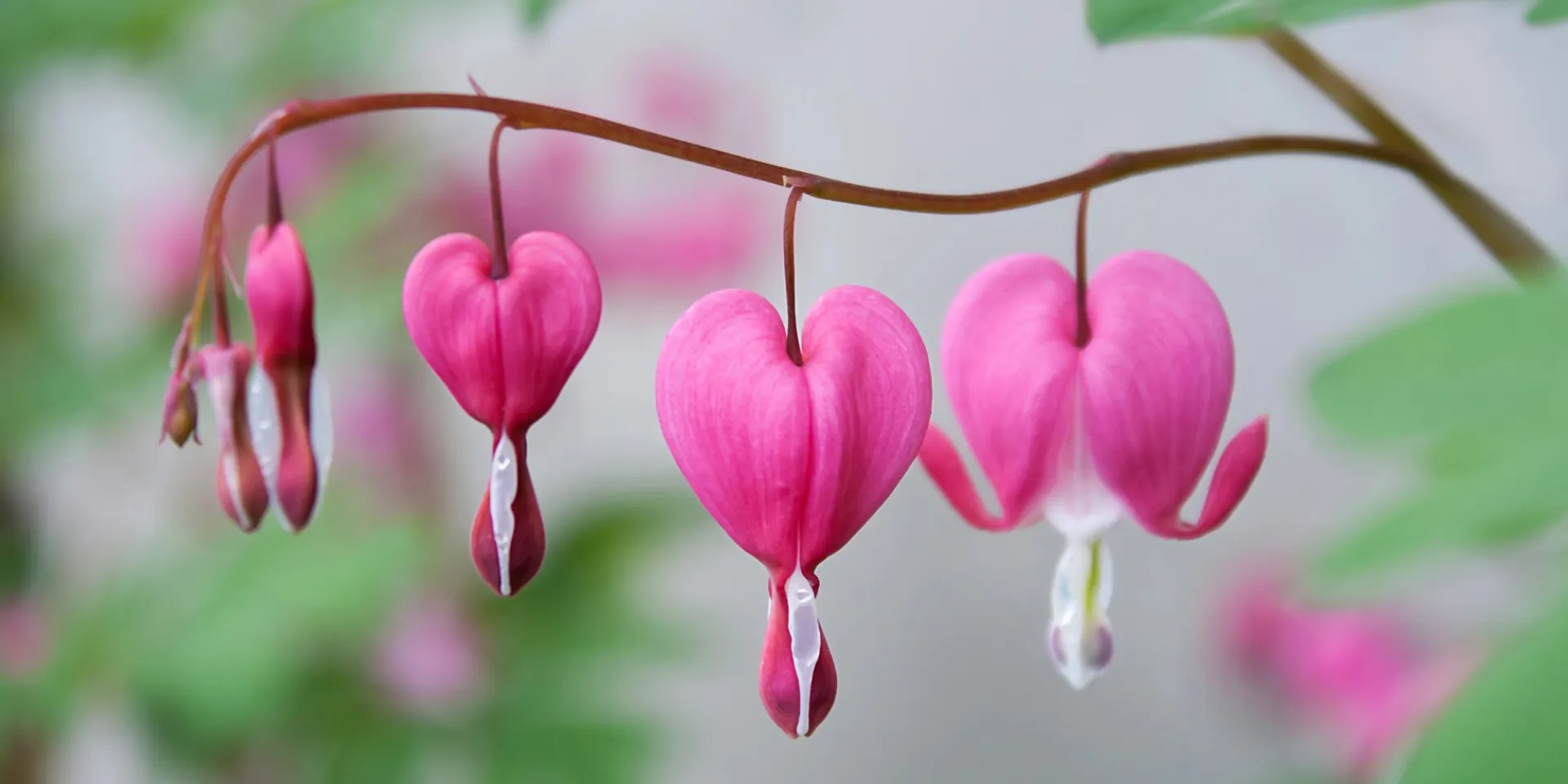 Zur Blütezeit im Mai und Juni bilden sich bis zu 30 Zentimeter lange überhängende Triebe mit vielen herzförmigen Blüten in einem zarten Rosa. An ihrer unteren Spitze sind sie weiß, sodass es scheint, als würde eine Träne aus dem Herz fallen. Inzwischen gibt es auch Sorten mit andersfarbigen Blüten im Handel – beispielsweise „Alba“ in weiß oder „Valentine“ in kirschrot. Nach der Blüte zieht sich die Staude regelrecht zurück, der überirdische Teil stirbt ab und die Pflanze verschwindet bis zum nächsten Frühjahr in der Erde.