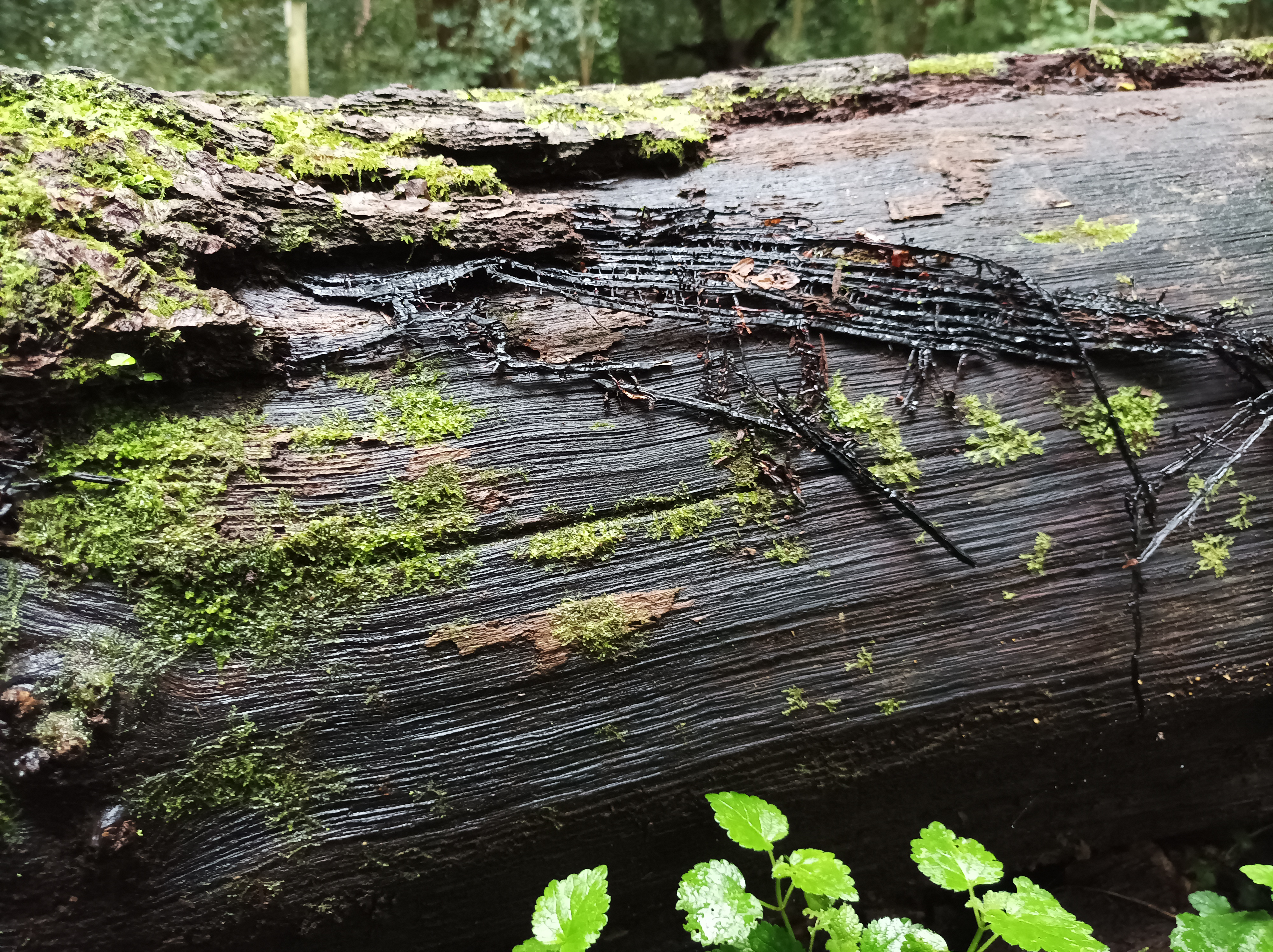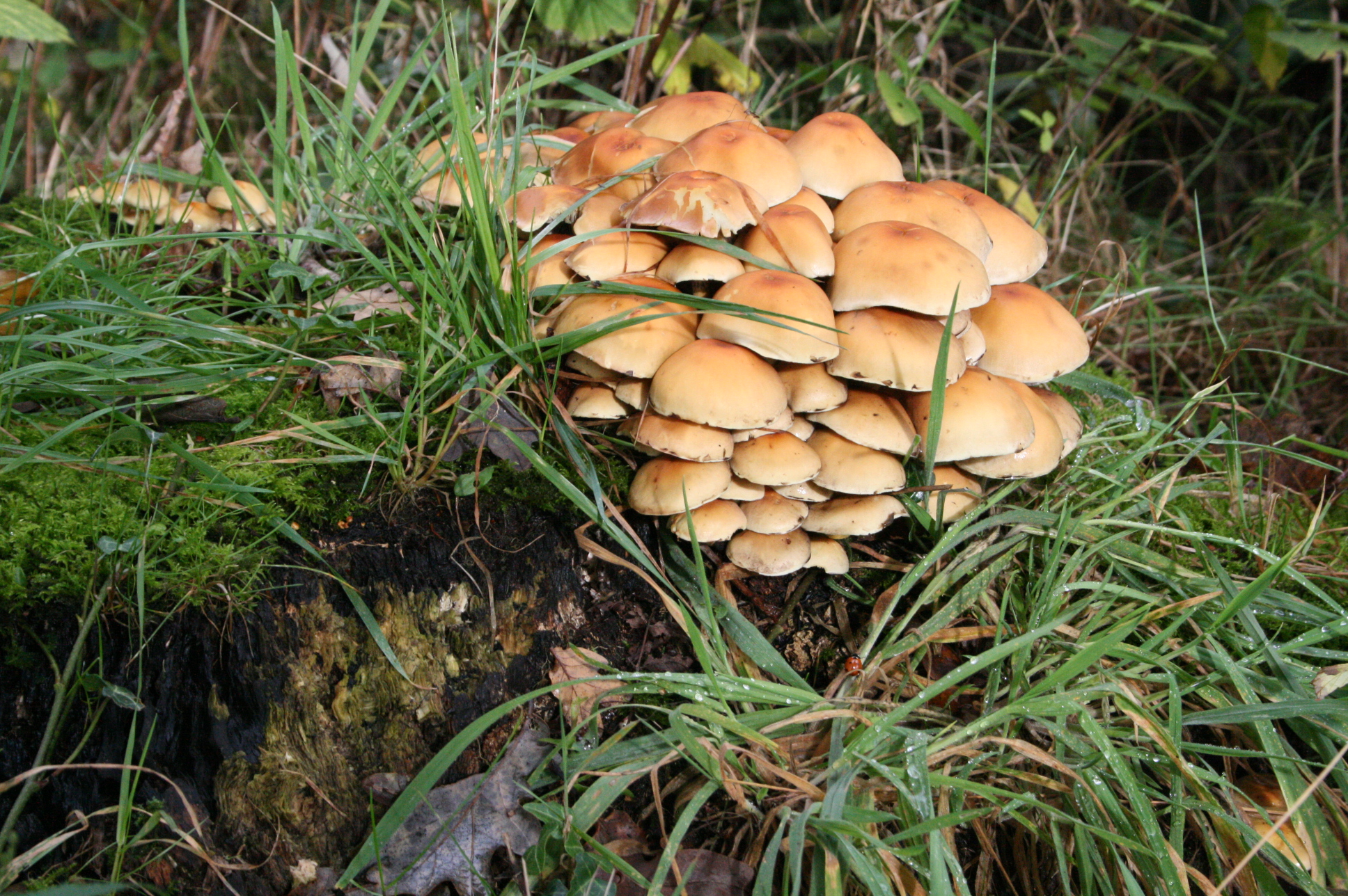 Pilze der Gattung Hallimasch (Armillaria spp.) befallen viele Gehölze. Nicht immer, aber in vielen Fällen ist Hallimasch an der Bildung der typischen Fruchtkörper zu erkennen, manchmal auch am weißen Myzel unter der Rinde der abgestorbenen Gehölze, das mit glänzend schwarzen Rhizomorphen durchzogen ist.