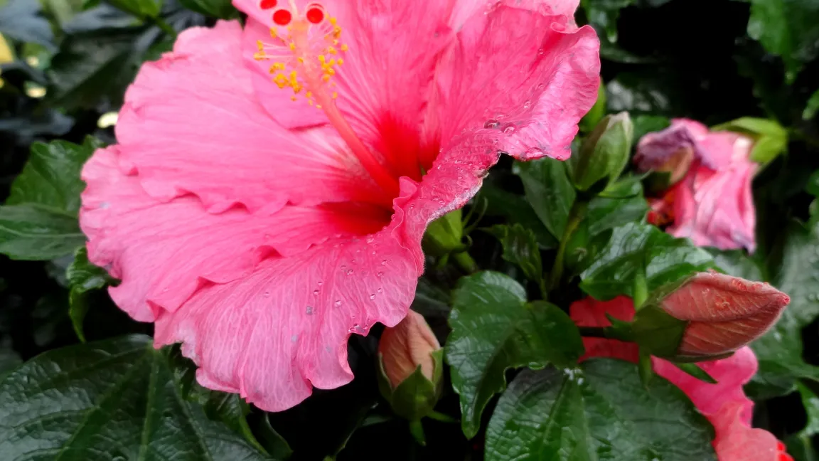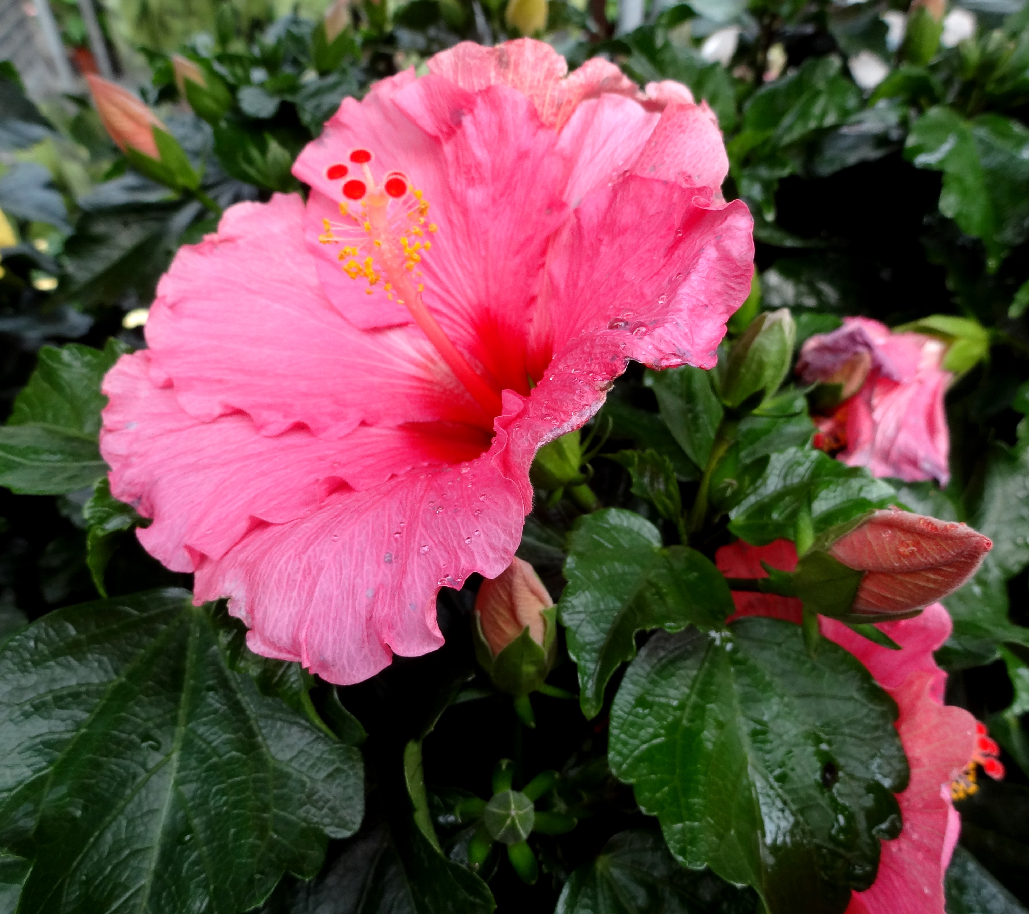 Zur Familie der Malvengewächse gehört die rund 250 Arten umfassende Gattung Hibiscus. Und aus dieser Gattung wiederum stammt der als Zimmerpflanze begehrte Chinesische Roseneibisch (Hibiscus-Rosa-Chinensis-Hybriden). In den tropischen Gebieten Asiens zu Hause, ist er aus Filmen und von Gemälden als Blumenschmuck der Südseemädchen bekannt, die ihr Haar damit verschönern oder leuchtende Blütenketten binden. Das Farbenspiel seiner großen Blüten reicht, je nach Sorte, von leuchtend rot über rosa und orange bis hin zu weißen, gelben und gemischten Tönen. Die Trichterblüten können einfach, halbgefüllt und gefüllt sein, gefranst, mit unterschiedlich gefärbter Blütenmitte und panaschierten Laubblättern. Auffallend sind außerdem seine herausragenden miteinander verwachsenen Staubgefäße und sein langer Stempel. Allerdings halten sich die dekorativen Trichter nur einen bis zwei Tage. Bei guter Pflege kommt aber aus jeder Blattachsel eine Blüte hervor, sodass die Blütezeit zu Hause von März bis November möglich ist.Die wunderschöne Wuchsform des als Topfpflanze gezogenen Strauchs wird beim Gärtner mit Wuchshemmstoffen erreicht. Verliert sich deren Wirkung zu Hause, wächst er etwas sparrig und braucht deshalb ausreichend Platz im Zimmer. Er will volles Licht, vor allem im Herbst, damit die Triebe ausreifen. Nur während der heißen Mittagssonne im Sommer sollte er etwas Schatten bekommen. Junge Pflanzen, die im Sommer in der vollen Sonne stehen, reagieren mit einem Einrollen der Blätter, weil sie die dann meist herrschende Lufttrockenheit nicht vertragen. Hier hilft ein Standortwechsel oder das wiederholte Übersprühen der Blätter mit Wasser. Die Wassertemperatur darf dabei aber nicht niedriger als die der Umgebung sein.