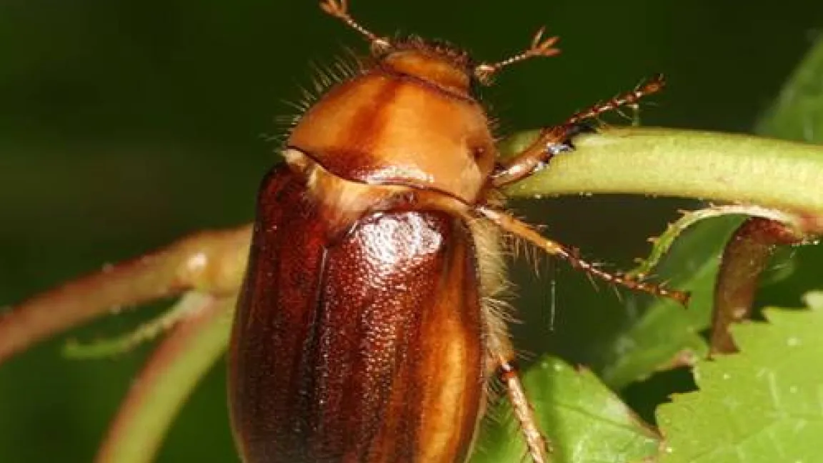 Der gelbbraune Junikäfer (Amphimellon solstitialis) ist mit 1,5 bis zwei Zentimetern Länge nur etwa halb so groß wie sein imposanter Verwandter, der Maikäfer. Beide gehören zu den Blatthornkäfern, den Scarabaeidae, und haben ähnlich große, etwa vier Zentimeter große, weiße Engerlinge. Deren unterirdische Entwicklung dauert zwei bis drei Jahre. In dieser Zeit fressen sie mit Vorliebe an den Wurzeln von Gräsern. Das wissen auch die Vögel, zum Beispiel Krähen: Im Spätsommer und Herbst graben sie mit ihren Schnäbeln durch die Grasnarbe kurz gemähter Wiesen und Rasenflächen, wenn ihre Suche nach dem proteinhaltigen Futter Erfolg verspricht. Eine biologische Bekämpfungsmethode, aber für den Rasen nicht besser als der Wurzelfraß der Engerlinge. Im Frühjahr verpuppen sich die Larven, und schon drei Wochen später fliegen die Käfer aus und fressen im Mai und Juni vor allem an Blättern von Laubgehölzen, allerdings nur für wenige Tage. In der Dämmerung umschwärmen sie häufig nicht nur ihre Artgenossen sondern auch Spaziergänger. Dabei fallen sie unangenehm auf, wenn sie sich mit ihren Beinen an diesen verhaken. Die Eiablage findet in der ersten Sommerhälfte am Boden statt.