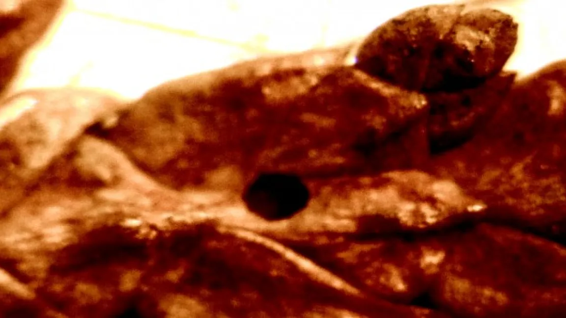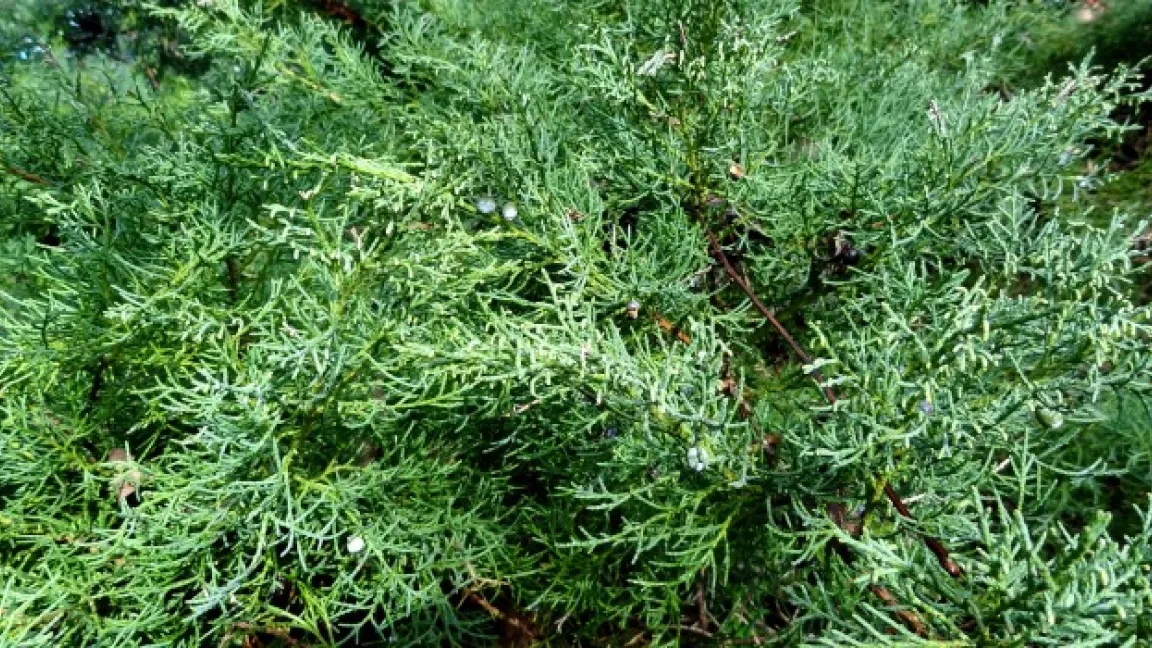 Die Triebspitzen einzelner Wacholderarten verbräunen mehrere Zentimeter lang. Diese Schäden sind scharf zum gesunden Gewebe abgegrenzt. An dieser Stelle ist dann meist ein rundes Loch im Zweig zu finden. Die verbräunten Triebspitzen brechen leicht ab. Im Inneren sind die Larven der Wacholder-Miniermotte (Argyresthia trifasciata)