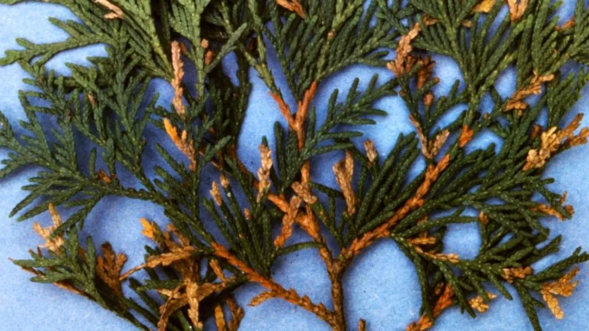 Braune Zweige und Triebspitzen an Lebensbaum und Wacholder werden nicht nur, wie oft vermutet, durch Frostschäden oder Krankheiten hervorgerufen. Bei der Diagnose solcher Schäden ist hier ebenso an die Folgen eines Minierfraßes von Raupen zu denken. Das Auftreten der Schädlinge ist nicht regelmäßig gleich stark. So kann nach vielen Jahren eines geringeren Auftretens örtlich wieder ein verstärkter Befall zu beobachten sein.Braune und gelbe Zweigteile am Lebensbaum