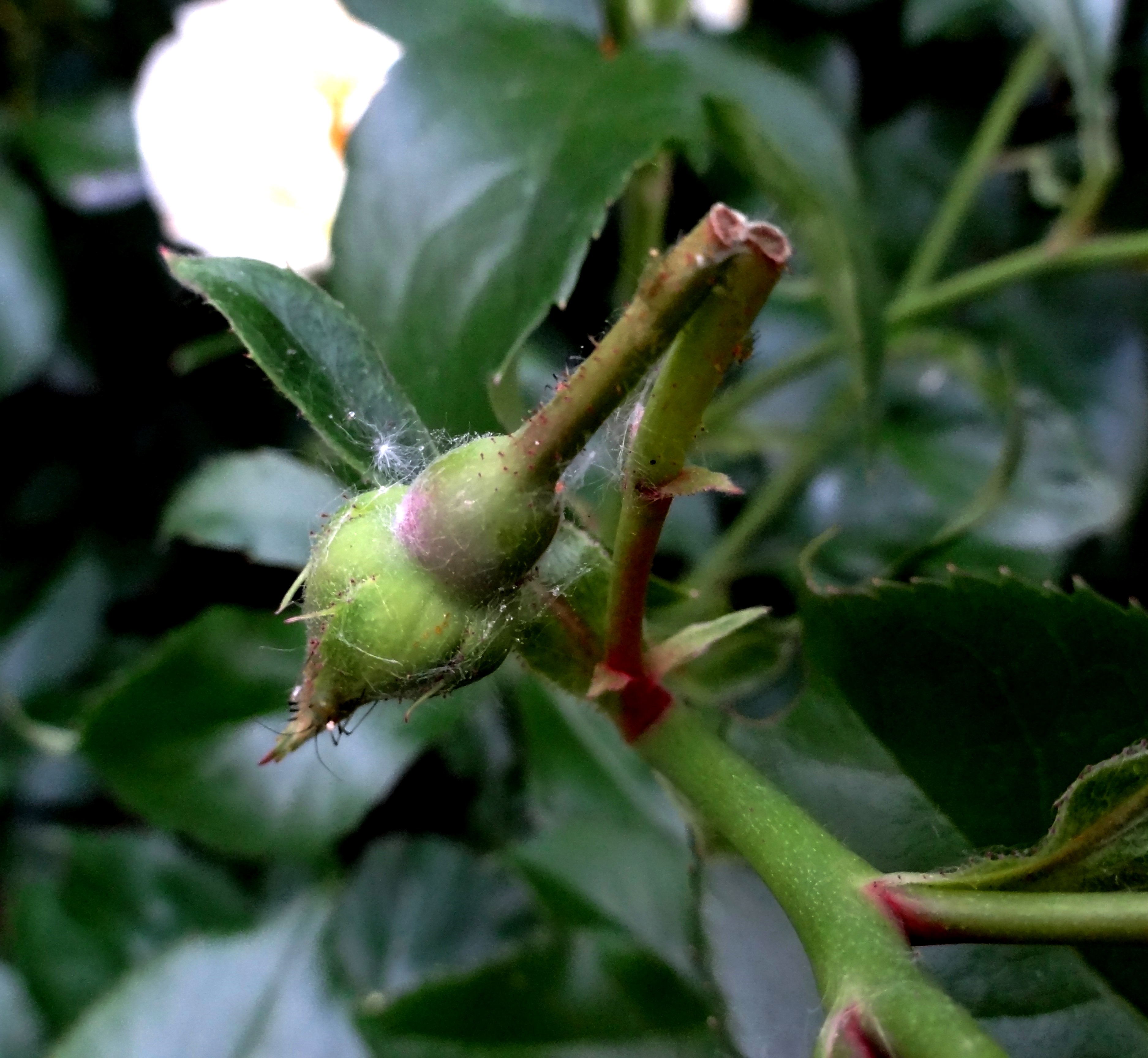 Wenn bei Rosen die Blütenknospen abbrechen, hängen sie zunächst am Stiel herunter. Sie entwickeln sich nicht weiter und fallen bald ab. Die Schäden sind meist nur vereinzelt zu finden. In einzelnen Jahren können sie aber häufiger auftreten.
