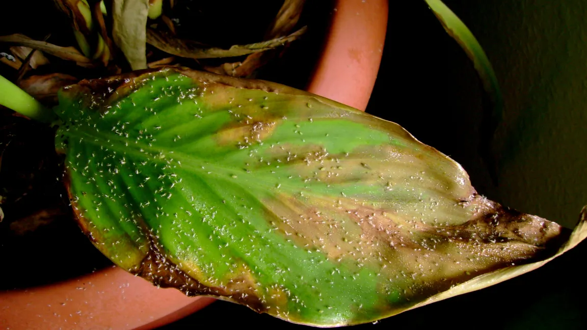 Zum Einsprühen bringt man die grünen Patienten möglichst auf den Balkon, in den Hausflur oder Garten. Ein Mindestabstand von 30 bis 50 Zentimetern zur Pflanze muss eingehalten werden. Denn der Sprühnebel aus der Dose ist so kalt, dass er Kälteschäden hervorrufen kann. Bei Pumpsprays kann das nicht passieren. Aufpassen muss man trotzdem: Die Pflanzen werden nur so lange eingesprüht, dass ein dünner, gerade noch sichtbarer Flüssigkeitsfilm auf den Pflanzen entsteht – auch an den Blattunterseiten. Nicht tropfnass sprühen!