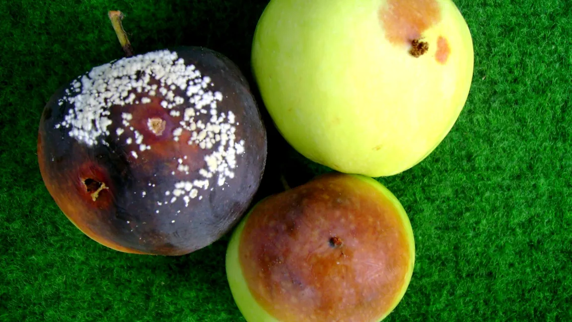 Abhilfe: Fungizid-Behandlungen der Früchte am Baum bei feuchtem Wetter solange fortführen, wie es die Wartezeiten der Präparate bis zur Ernte ermöglichen.