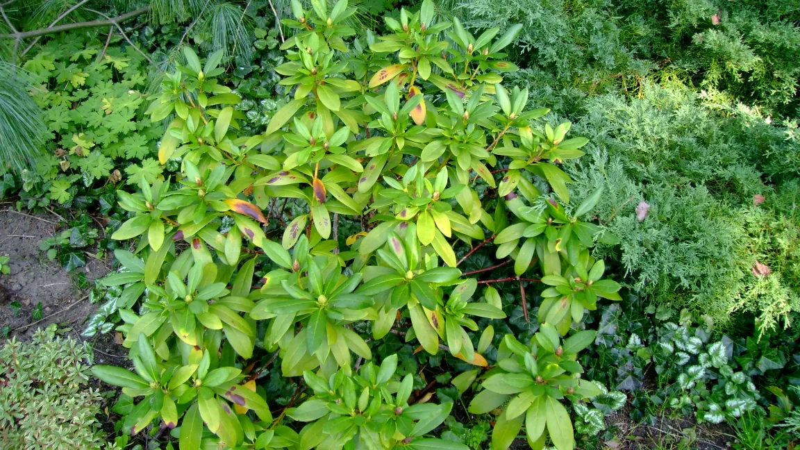 Des Weiteren sollte man vor allem für die großblättrigen, immergrünen Rhododendron-Arten windexponierte Stellen ausschließen, da sonst mechanische Schäden an den Blättern unvermeidlich sind. Vor allem bei schmalen Gartenstreifen zwischen eng stehenden Gebäuden entstehen solche windexponierten Lagen.