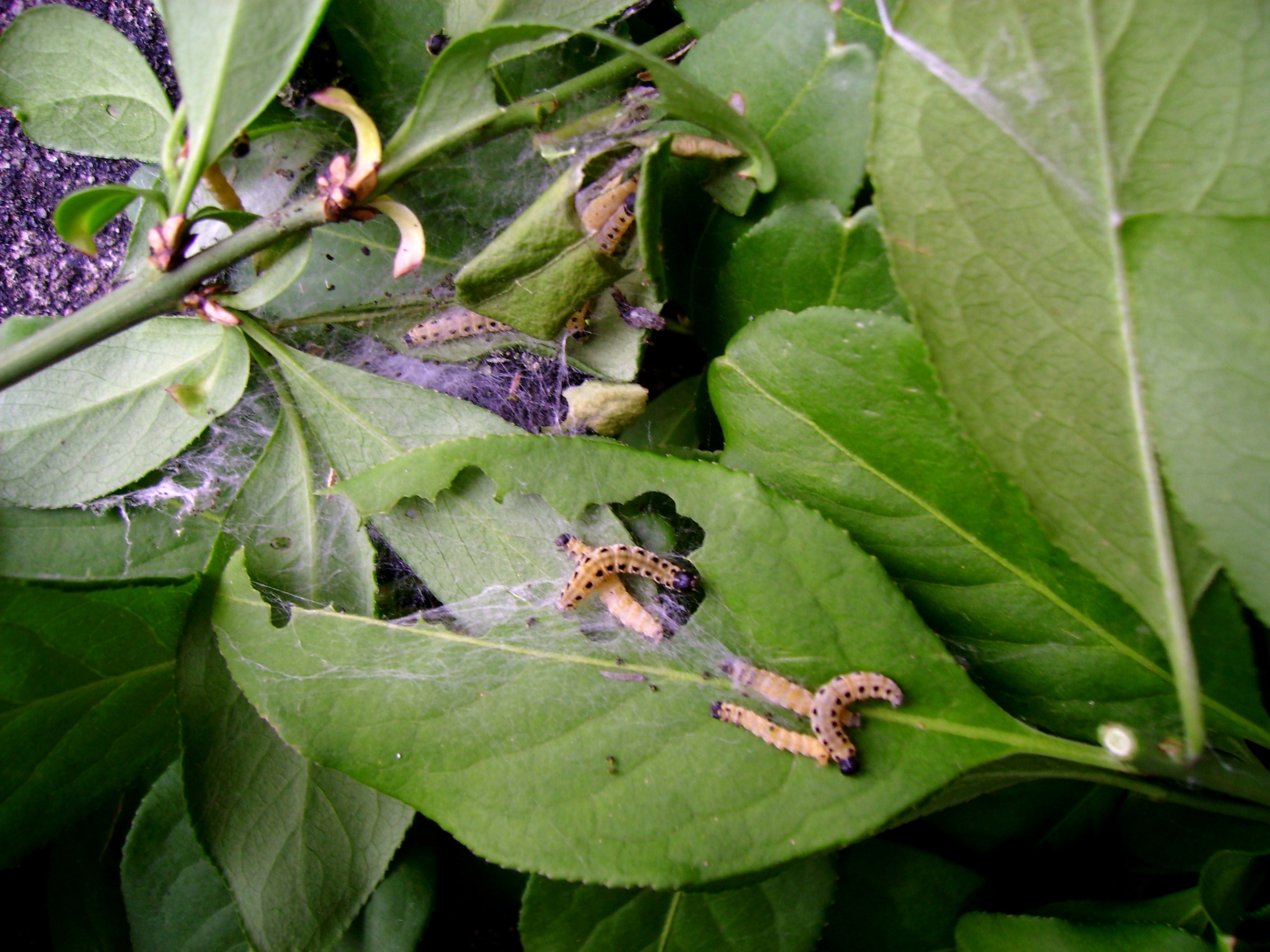 Ursache: Spindelbaumgespinstmotte – Hyponomeuta cognatellus (H. evonymi)
