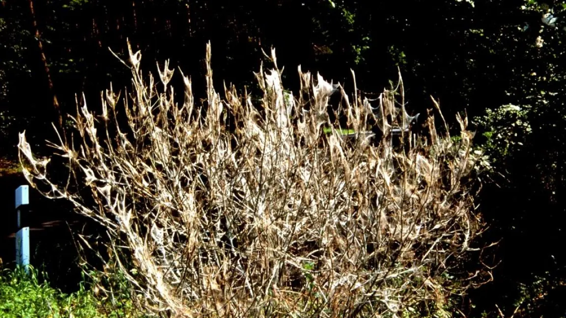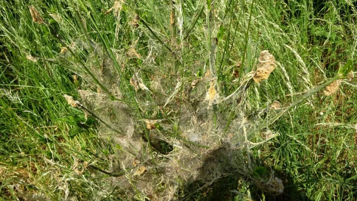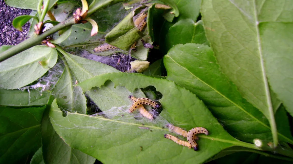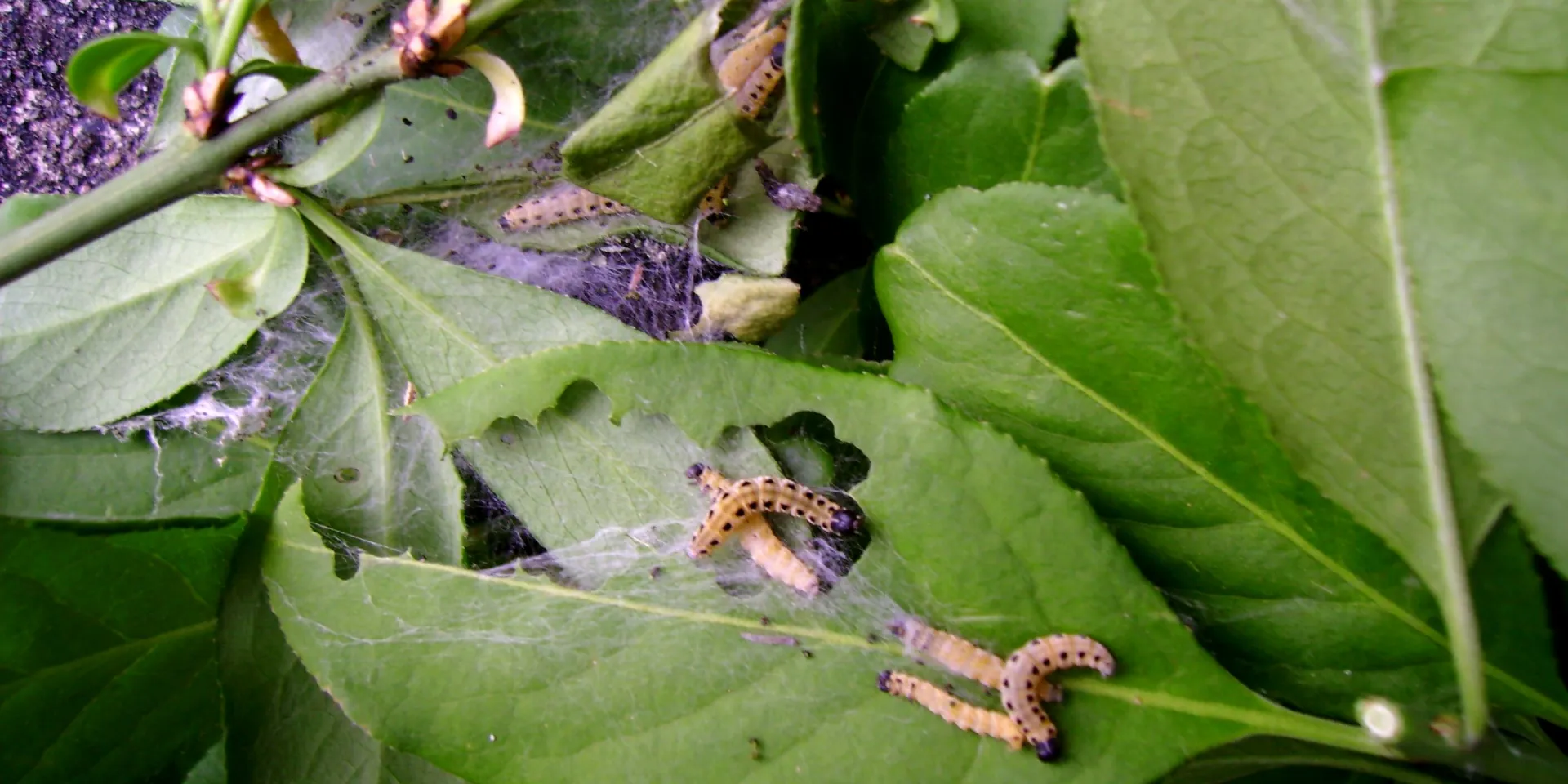 Abhilfe: Bei geringem Befall lohnt es sich, die Gespinste mit den darin sitzenden Raupen abzuschneiden und zu vernichten. Sind die Schäden umfangreich und in größeren Pflanzenbeständen, so können auch direkte Gegenmaßnahmen mit zugelassenen Insektiziden notwendig werden. Diese sind umso wirksamer, je jünger die Raupen sind und bevor größere Gespinste angelegt wurden. Um die Gespinste zu durchdringen, muss mit hohem Druck gespritzt werden.