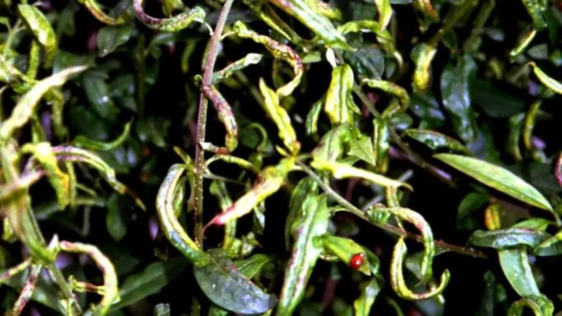 Versponnene Blätter an Triebspitzen