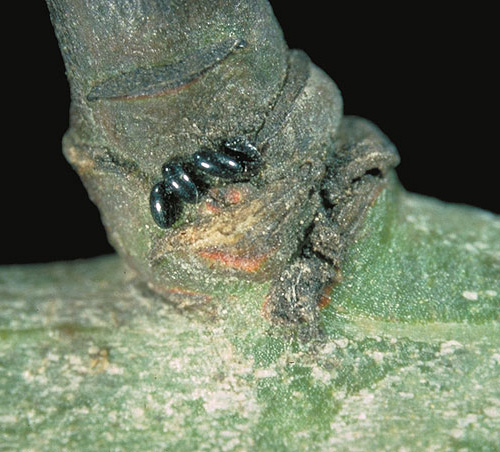 Andere Arten haben auch andere Winterquartiere: So überwintert die Große Getreideblattlaus (Sitobion avenae) zum Beispiel auf Gräsern, die Grüne Pfirsichblattlaus (Mycus persicae) vorzugsweise auf Pfirsichbäumen und die Haferblattlaus (Rhopalosiphum padi) auf der Traubenkirsche.