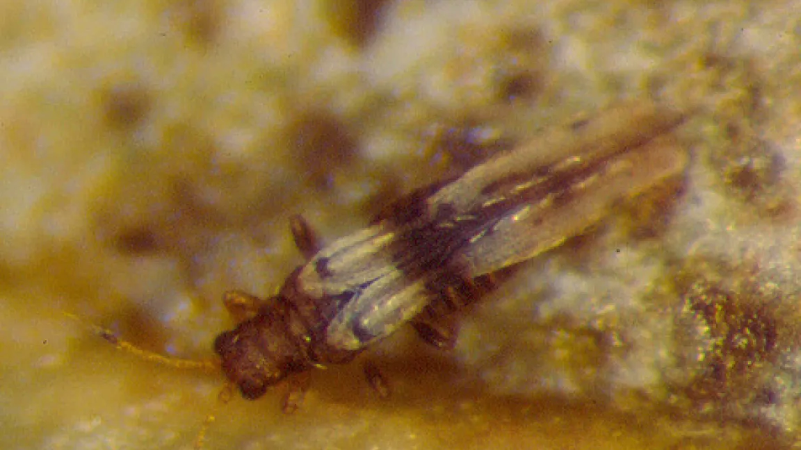 Die u. a. als Blasenfüße oder Fransenflügler bekannten Insekten saugen den Saft von allem, was grünt und blüht