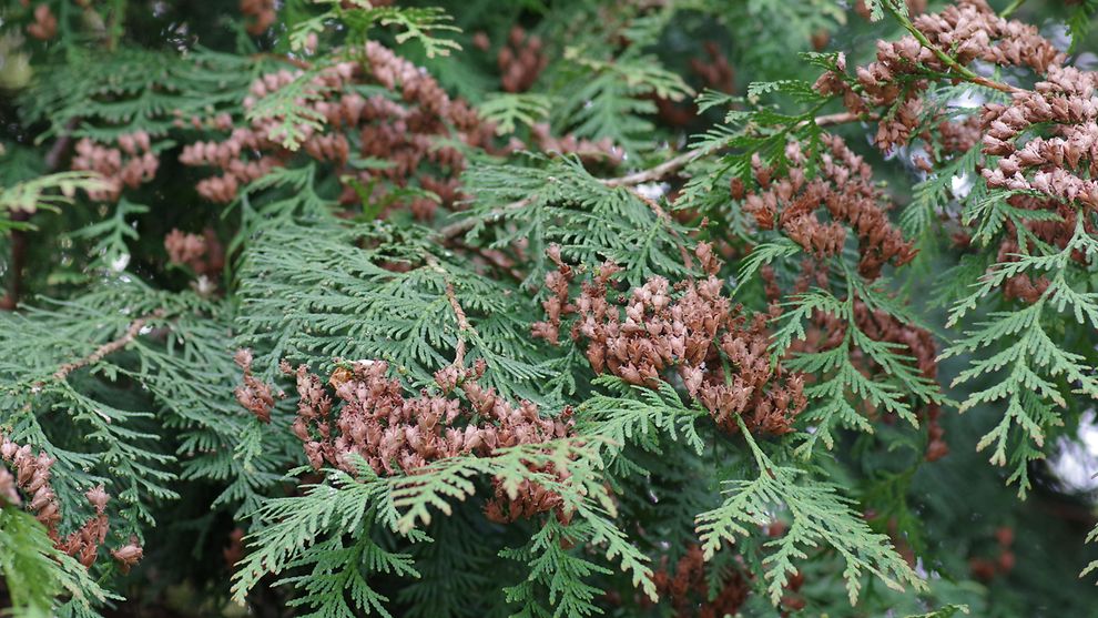 Der Lebensbaum ist auch unter seinem botanischen Namen Thuja bekannt. Holz, Zweige und Zapfen des Gehölzes aus der Familie der Zypressengewächse sind durch Bitter- und Gerbstoffe sowie das charakteristische Thujon sehr stark giftig. Dies gilt, wie bei den meisten Giftpflanzen, für den Fall, dass Teile des Lebensbaums verzehrt werden. Aber auch beim Schneiden einer Thuja-Hecke ist Vorsicht geboten: Der austretende Pflanzensaft kann starke Hautreaktionen hervorrufen. Daher werden für diese Gartenarbeit sowohl Handschuhe als auch langärmelige Kleidung sowie eventuell ein Gesichtsschutz empfohlen.