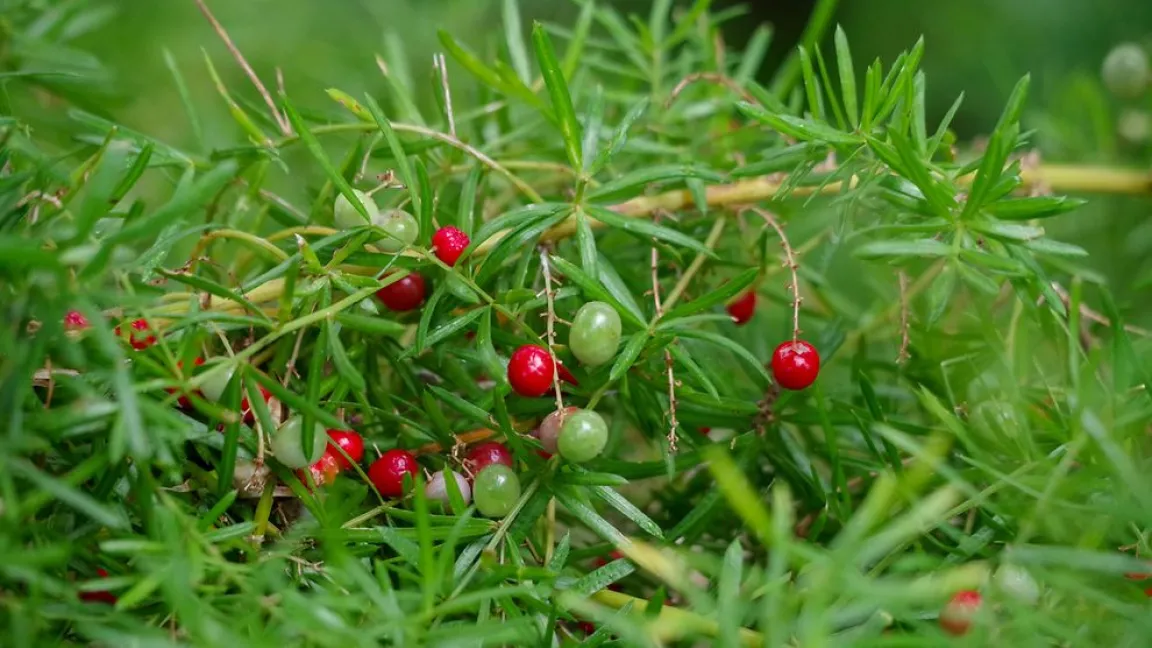 Spargel (Asparagus officinalis), der Gemüsespargel oder Gemeiner Spargel, ist erstmals als Kandidat für die „Giftpflanze des Jahres“ ausgewählt worden. Fans des königlichen Stangengemüses können dennoch aufatmen. Denn das giftige Sparginin sowie verschiedene Glykoside sind nur in den leuchtend roten Beeren der Pflanze enthalten. Auf Spargelfeldern dürften die giftigen Beeren aber kein Problem darstellen. Denn sie werden nur von weiblichen Blüten gebildet. Beim Spargelanbau werden jedoch nur männliche Pflanzen eingesetzt.