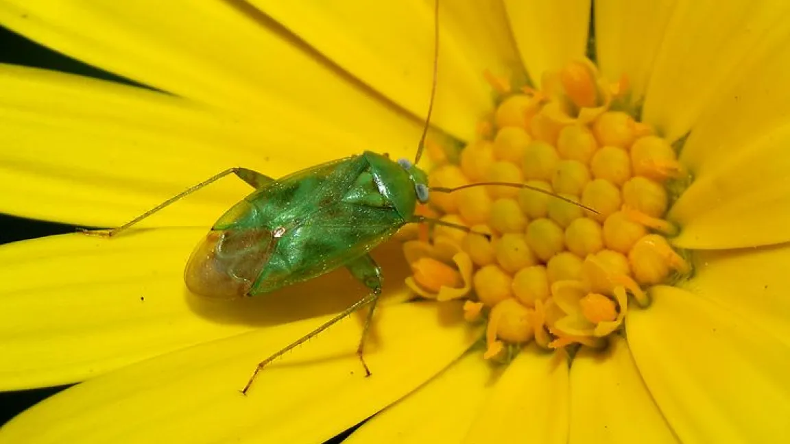 Bei dem Wort „Wanzen“ läuft manch einem ein Schauer über den Rücken, weil man an Bettwanzen denkt. Doch es geht um Blattwanzen, die an Pflanzen im Garten saugen. Einige Arten sitzen manchmal auch als Lästlinge an Häuserwänden oder dringen in die Wohnung bei der Suche nach Überwinterungsmöglichkeiten. Besonders unangenehm werden sie dann, wenn sie sich bedroht fühlen und aus Drüsen am Hinterleib ein übel riechendes Sekret absondern. Einige Arten tragen auch den deutschen Namen „Stinkwanze“.Die bei uns im Garten häufigste Art der Blattwanzen ist die Grüne Futterwanze Lygus (Lygocoris) pabulinus, die 5 bis 6,7 Millimeter lang und glänzend hellgrün gefärbt ist. Sie tritt sowohl an krautigen Zierpflanzen als auch an Bäumen und Sträuchern auf. Die recht mobilen Tiere sind an den Schadstellen selten zu sehen. Wirtspflanzen sind beispielsweise Chrysanthemen, Sonnenblumen, Pelargonien, Rosen, Fuchsien, Dahlien, Zinnien, Engelstrompeten und andere Beet- und Kübelpflanzen, aber auch an Kartoffeln können Schäden beobachtet werden.