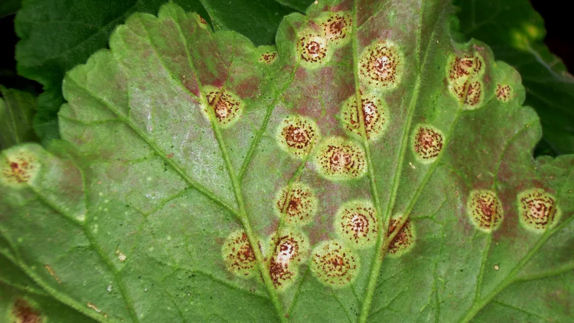Pelargonien, im Volksmund auch Geranien genannt, sind beliebte Pflanzen zur Gestaltung von Balkonkästen oder Blumenkübeln auf der Terrasse. Hierzu werden hauptsächlich die vielfältigen Sorten der stehenden Pelargonie (Pelargonium zonale) und der hängenden Efeupelargonien (Pelargonium peltatum) verwendet. Wenn die Beet- und Balkonpflanzensaison vorbei ist, überwintern viele Pflanzenfreunde ihre Schmuckstücke. Vor dem Einräumen der Pflanzen sind diese auf möglichen Krankheits- oder Schädlingsbefall zu kontrollieren, damit dieser noch vor dem Überwintern beseitigt werden kann. Im Winterquartier können sich sonst Pelargonienrost, Grauschimmel und Blattläuse ausbreiten, daher sollten wir in dieser Zeit die Pflanzen nicht aus dem Auge verlieren.Pelargonienrost zerstört die Blätter
