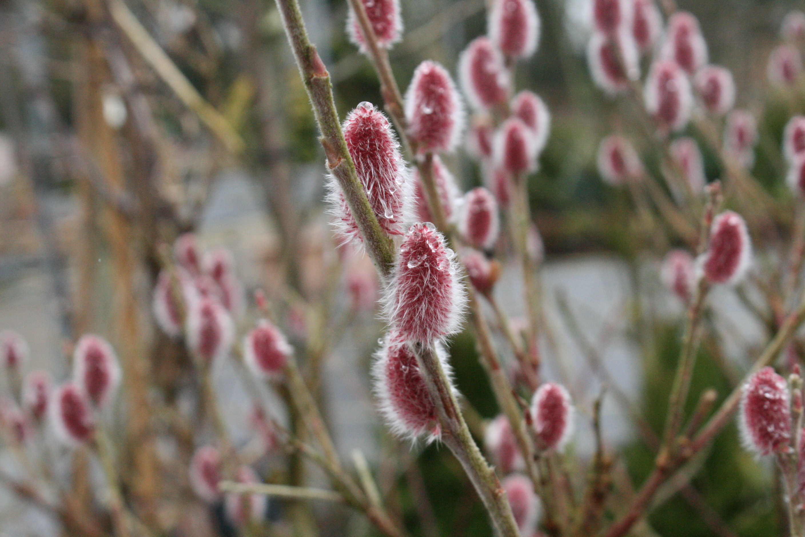 Andere Weiden-Arten fallen durch ihre schönen Blütenkätzchen auf. Am bekanntesten ist wohl die männliche Form der Salweide Salix caprea 'Mas'. Sie bildet reichlich große Kätzchen, die zunächst silbrig sind und später gelb aufblühen. Rosarote, samtige Kätzchen hat die Salix gracilistyla 'Mount Aso', die auch unter dem Markennamen "Rotkätzchen" angeboten wird. Weniger bekannt ist die "Schwarzkätzchen-Weide" Salix melanostachys 'Kurome' mit einzigartigen schwarz-roten Kätzchen.