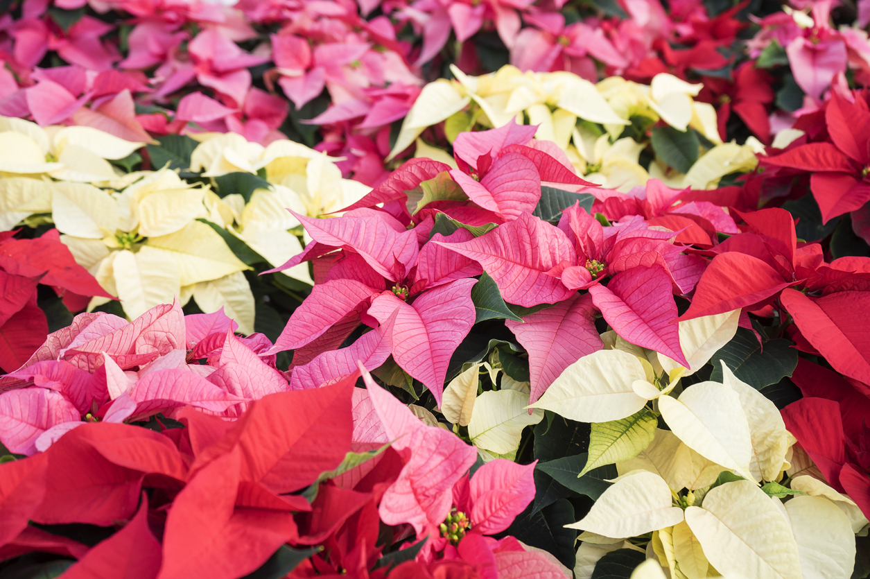 Ab Ende Oktober gibt es Weihnachtssterne in vielen Größen und Farben zu kaufen ‒ von klein bis groß und vom klassischen Rot über Weiß, Gelb und Rosa bis zu zweifarbigen Exemplaren. Was den Schmuckwert der Weihnachtssterne ausmacht, sind nicht die kleinen unscheinbaren Blüten in der Mitte der Pflanze, sondern ihre farbigen Hochblätter. Diese dienen in der Natur dazu, Insekten und Kolibris zu den Blüten zu locken.