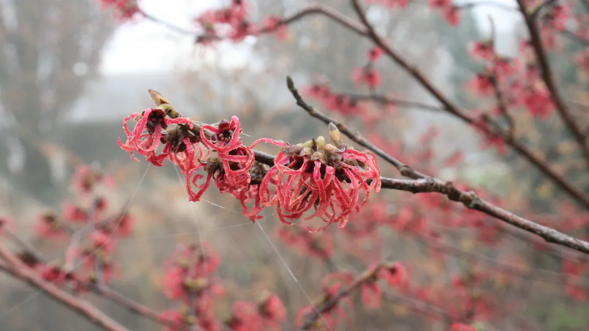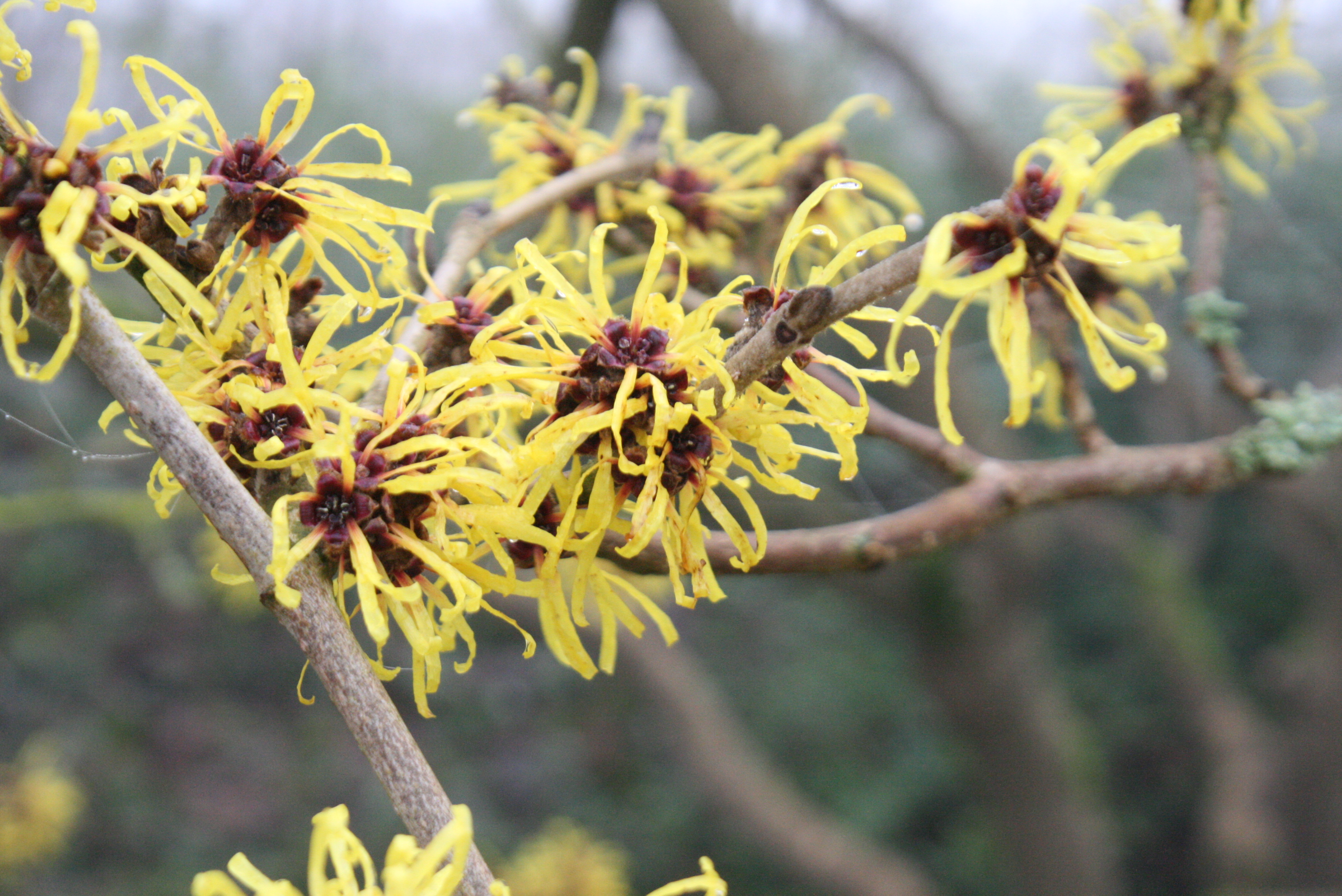 Bei den winterblühenden Gehölzen sind die Zaubernüsse (Hamamelis spp.) besonders attraktiv. Die Blüten der meisten Sorten strahlen nicht nur in knalligen Farben, sondern duften auch noch intensiv. Viele von ihnen blühen leuchtend gelb, einige aber auch in Kupfer- oder Rottönen. Letztere fallen zur dunklen Jahreszeit nicht sehr auf, wenn sie alleine stehen, sondern wirken am besten, wenn sie als Gruppenpflanzung vor zwei gelb blühenden Zaubernüssen platziert werden.