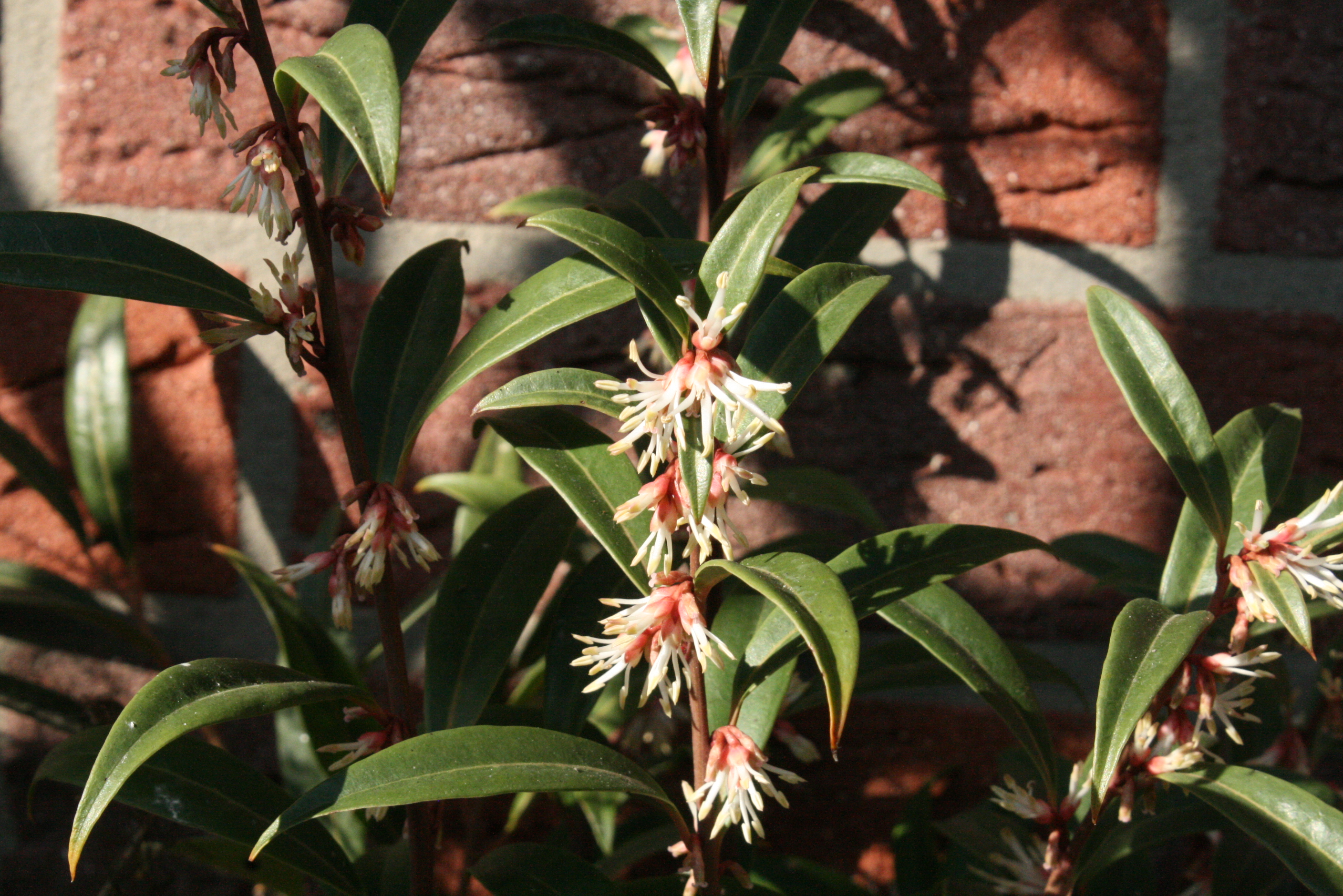 Einen nicht ganz so auffälligen Gelbton besitzen die Blüten des bei uns heimischen Hartriegels Cornus mas, die sich ab Ende März zeigen. Dafür stellen sie eine besonders wertvolle Nahrungsquelle für Bienen dar. Außerdem ist diese Pflanze sehr schnittverträglich und sogar für dichte Hecken geeignet. Ein weiterer Strauch, der schon sehr früh ab Januar/Februar blüht, ist die Winter-Heckenkirsche Lonicera x purpusii. Ihre zarten weißen Blüten senden außerdem einen betörenden Duft aus. Eine seltene, noch viel zu wenig bekannte Schönheit ist die Chinesische Winterblüte Chimonanthus praecox. Auch die etwas frostempfindlichen Fleischbeeren (Sarcococca spp.) werden immer interessanter, seitdem die Winter milder geworden sind. Die Blüten dieses immergrünen Strauchs sind weiß und senden einen betörenden Duft aus.