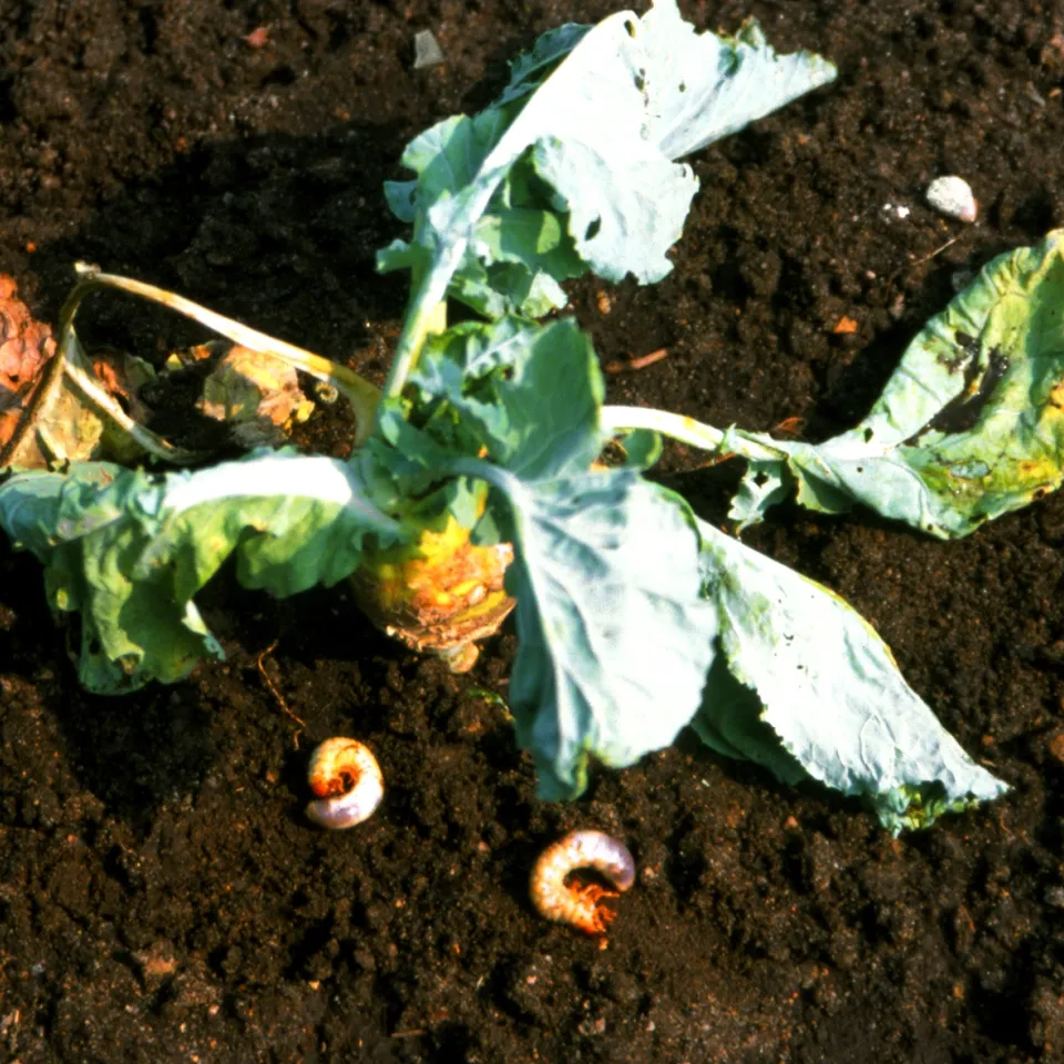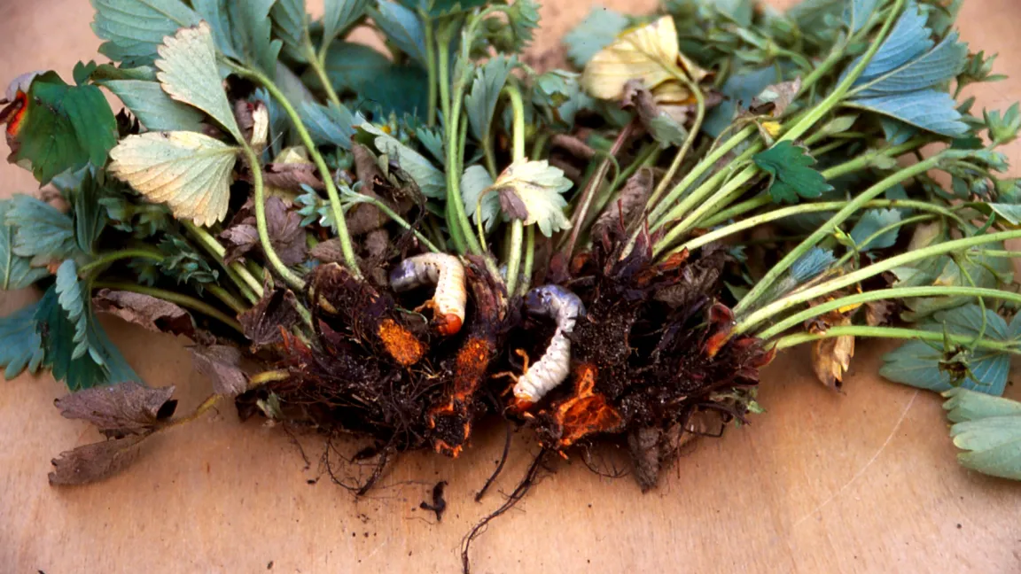 Wenn nach Maikäferflugjahren die Pflanzen trotz guter Wachstumsbedingungen welken, könnten Engerlinge die Schadensverursacher sein. Im Gartenbau fressen sie mit Vorliebe an Erdbeeren und Salat, aber auch Bohnen, Kohlrabi und Sommerblumen. Rasenwurzeln und die Knollen von Gladiolen und Kartoffeln werden nicht verschmäht. Wenn die Pflanzen in den Saat- oder Pflanzreihen hintereinander nach und nach abwelken, sollte man Verdacht schöpfen. Aus dem Obstbau sind auch Schäden durch Nagefraß an den Wurzeln besonders bei Jungbäumen bekannt. Auf größeren Rasenflächen weisen Krähen, die den Boden regelrecht umwühlen, auf Beute im Boden hin. Je nach Kultur lassen einer bis fünf Maikäfer-Engerlinge pro Quadratmeter erhebliche Pflanzenschäden erwarten. Die ausgewachsenen Engerlinge verpuppen sich im Sommer des dritten beziehungsweise vierten Entwicklungsjahres in einer 20 bis 40 Zentimeter tief im Boden gelegenen Höhle. Der Jungkäfer schlüpft schon nach sechs Wochen, bleibt aber bis zum kommenden Frühjahr im Boden.