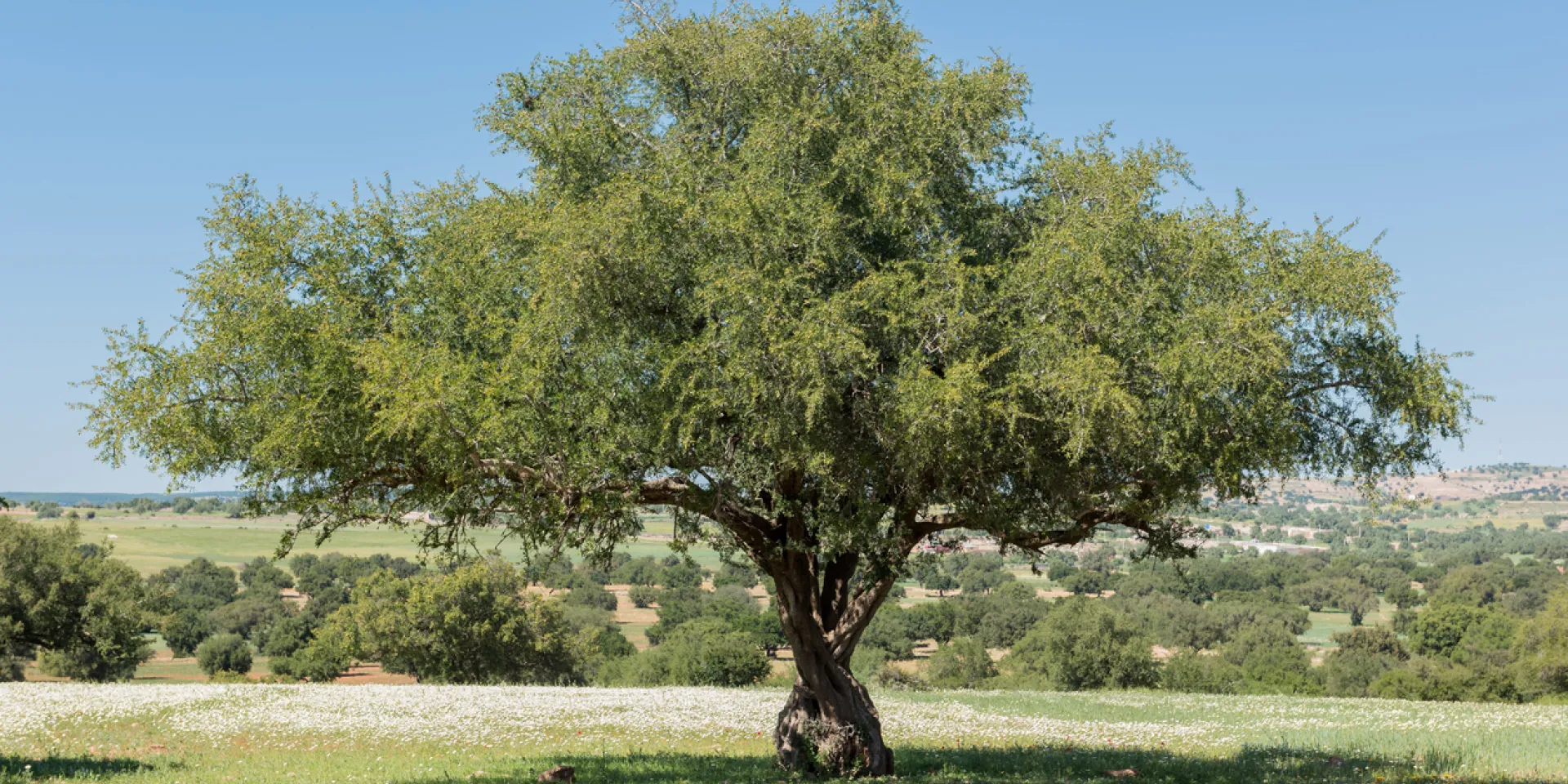 Marokko ist das einzige Land weltweit, in dem Arganöl produziert wird. Das Öl wird aus den Früchten des Arganbaums gewonnen. Der Baum, mit dem botanischen Namen Argania spinosa und dem deutschen Namen Arganie, auch als „Eisenholzbaum“ bezeichnet, gehört zu den ältesten Bäumen unserer Erde. Es wird vermutet, dass der Baum schon vor etwa 65 Millionen Jahren (einige Literaturangaben gehen von 80 Millionen Jahren aus) im Mittelmeerraum, in Nordafrika und Südeuropa verbreitet war. Heute ist das natürliche Vorkommen auf ein Gebiet im Südwesten Marokkos begrenzt. Das Gebiet ist 1998 von der UNESCO zum Biosphärenreservat erklärt worden.Die immergrüne Arganie wird 10 bis 12 Meter hoch und ist weit ausladend mit einem Kronendurchmesser von etwa 15 Metern und einem Umfang von 70 Metern. Das anspruchslose Gehölz ist an den Wüstenstandort angepasst, verträgt sogar Temperaturen über 50 Grad Celsius und kann längere Trockenperioden überstehen. Dann werden allerdings die Blätter abgeworfen. Arganien werden allgemein etwa 200 Jahre alt, wobei auch bis zu 400 Jahre alte Bäume gefunden wurden.