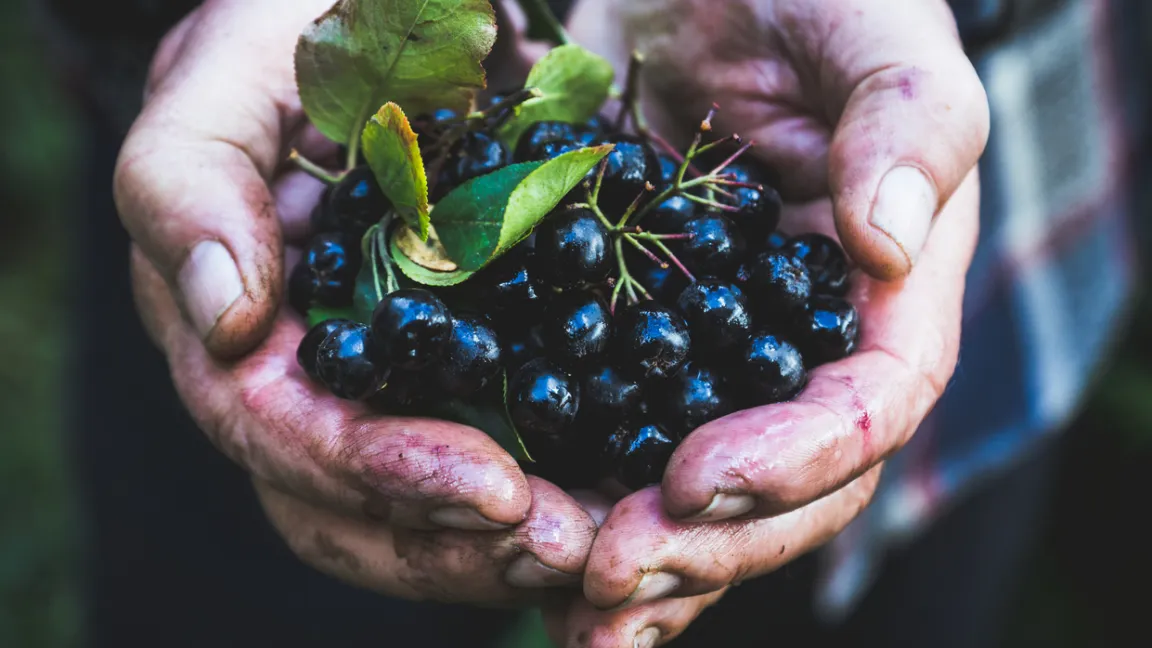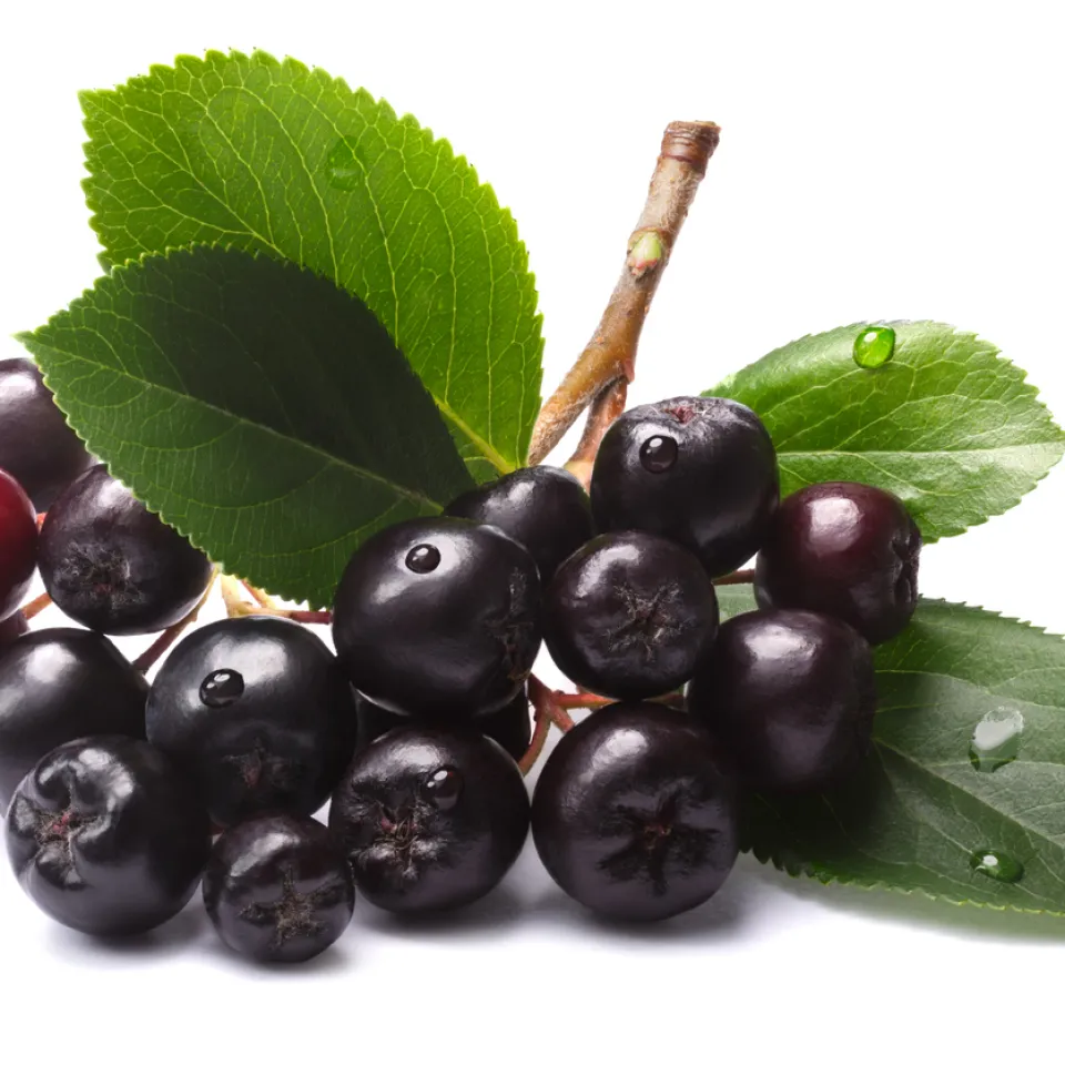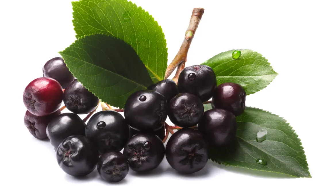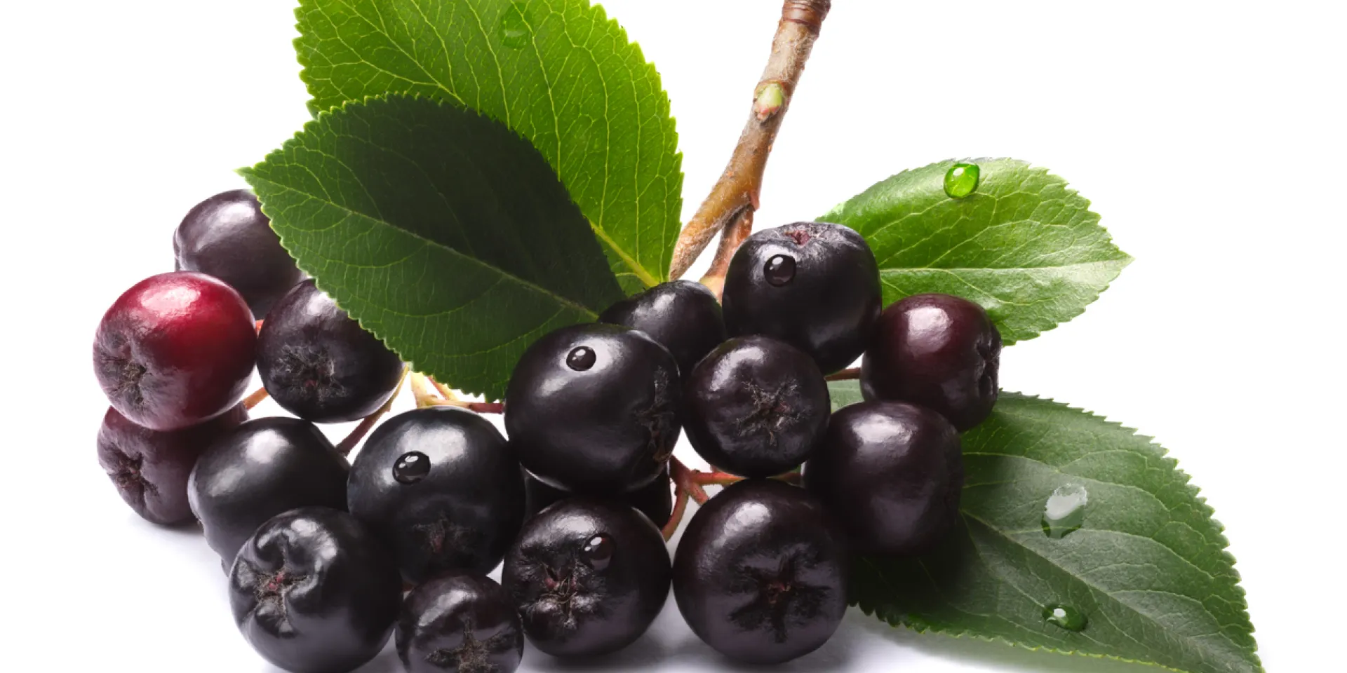Die gut erbsengroßen, blauen bis schwarzen Früchte der Aronia ähneln äußerlich sehr stark Blaubeeren oder Schwarzen Johannisbeeren. Doch im Unterschied zu diesen bei uns lange etablierten Obstarten hat der Newcomer in den letzten Jahren eine eindrucksvolle Entwicklung genommen. Die Früchte gelten als wahre Gesundheitsbooster. Vergleicht man die Vitamingehalte mit anderen Obstarten, so schneidet die Aronia eher durchschnittlich ab. Erwähnenswert sind die überdurchschnittlichen Gehalte an Folsäure, auch Vitamin B9 genannt, und Mineralstoffen. Worauf jedoch die intensive Werbung fußt, sind die hohen Gehalte an sekundären Pflanzenstoffen. Hier sind besonders Polyphenole wie das Anthocyan zu nennen, das für die kräftige Färbung der Aroniafrüchte verantwortlich ist.