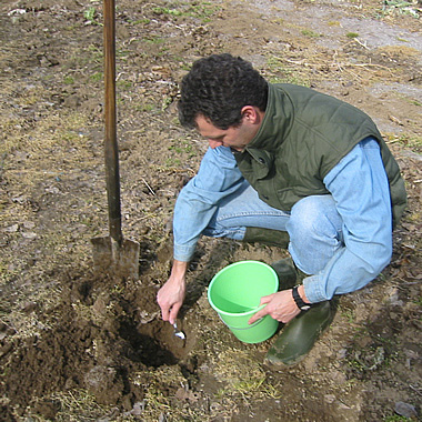 Egal ob Gemüse- oder Blumenbeet, Rasen oder Obstgarten - um eine Bodenprobe zu entnehmen, benötigt man lediglich einen Spaten, einen Löffel und eine Tüte. Zunächst wird mit dem Spaten oder Löffel ein Loch bis zur gewünschten Tiefe ausgehoben, etwa soweit wie die jeweiligen Wurzeln vordringen. Dann nimmt man gleichmäßig von den Seiten des Loches etwas Erde ab. Dazu sind 10 bis 15 Einzelproben an verschiedenen Stellen notwendig. Am Ende werden sie dann miteinander vermischt und ca. 500g davon in einen sauberen Plastikbeutel abgefüllt. Wenn das geschehen ist, schickt man die Probe an ein Untersuchungszentrum, zum Beispiel an die Landwirtschaftskammer Nordrhein-Westfalen in Münster www.landwirtschaftskammer.de.