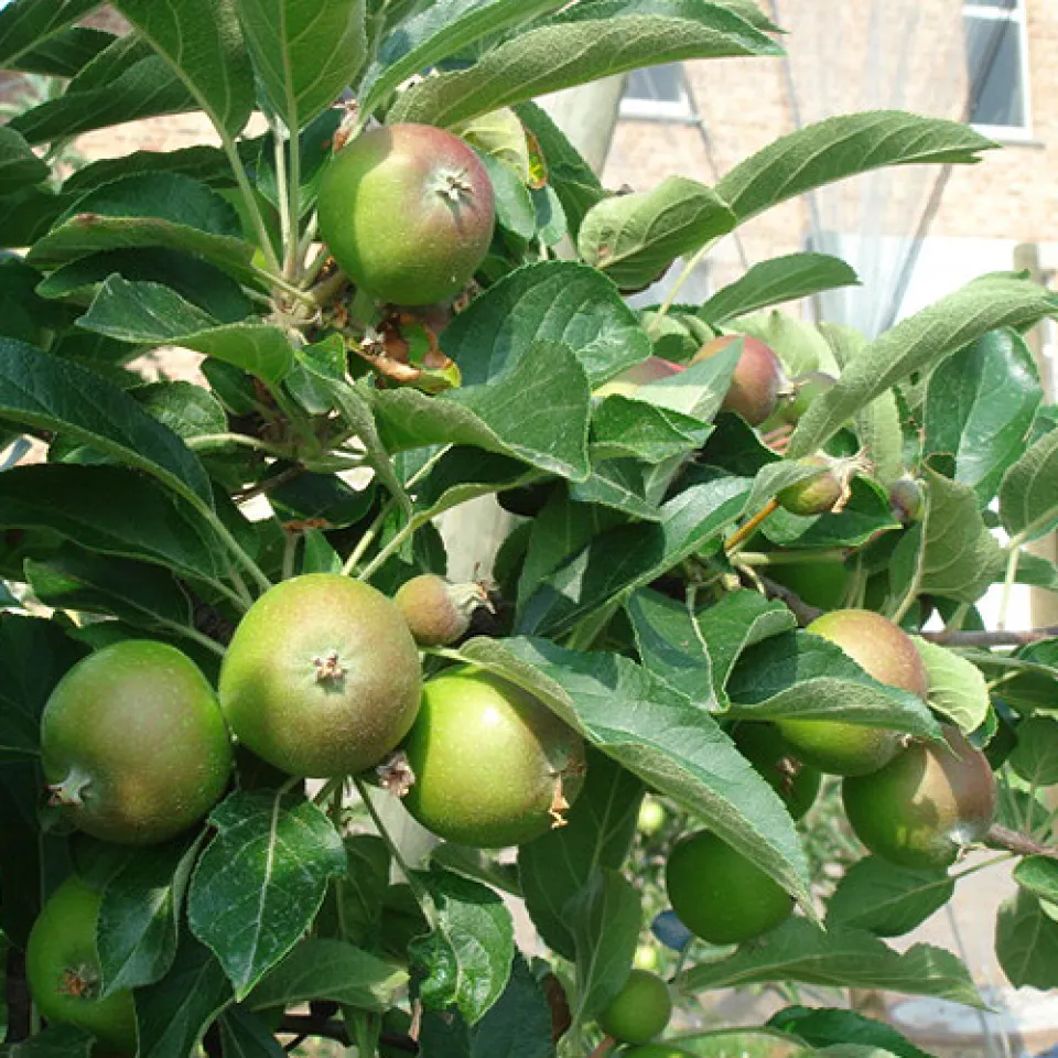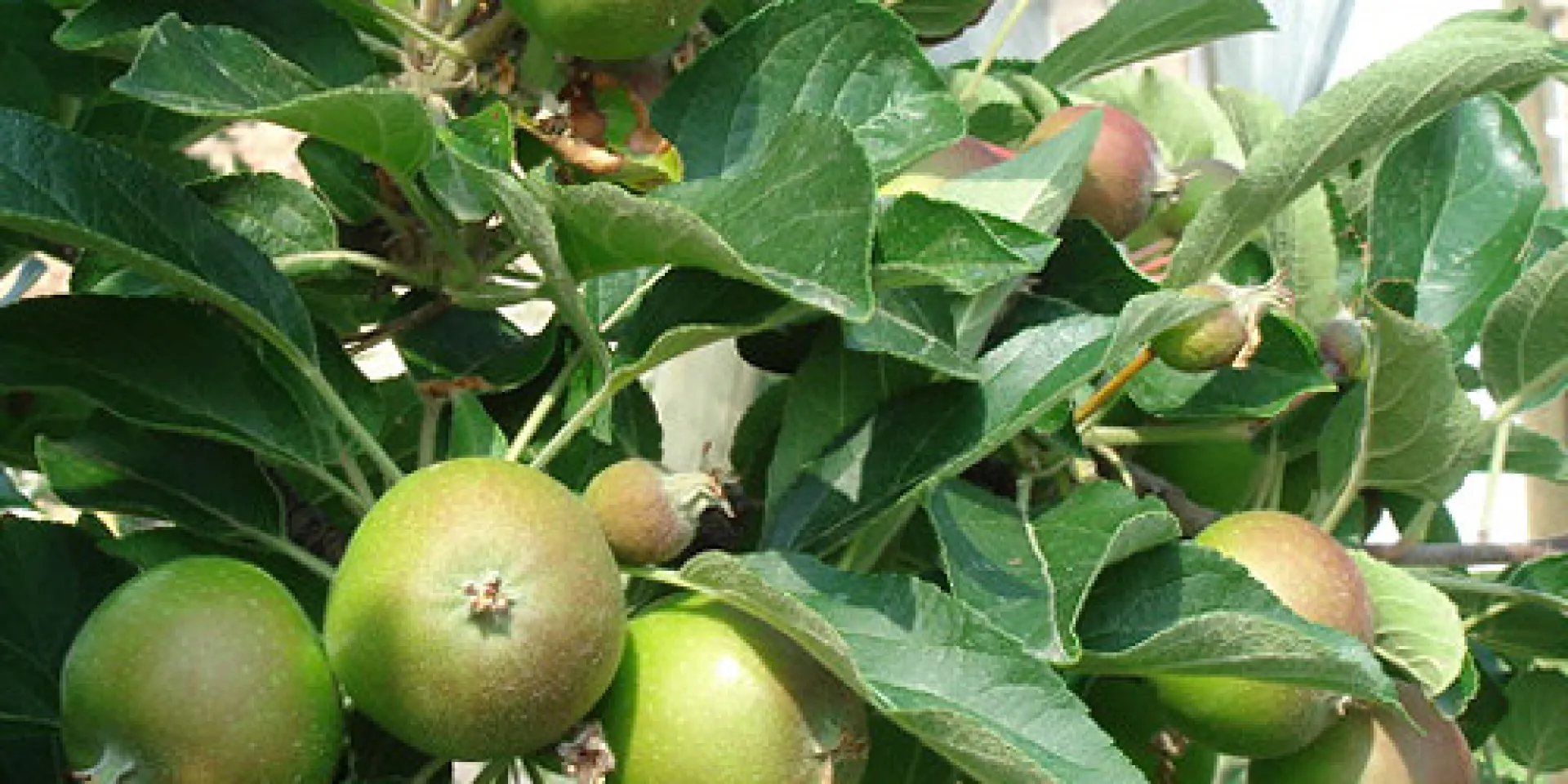 Bei Krankheiten wie Mehltau und Schorf wartet der Obstbauer nicht, bis die Krankheitszeichen zu sehen sind. Denn hat sich der typische, grauweiße oder bräunliche Pilzbelag erst einmal auf unseren Blättern ausgebreitet, bringt eine Bekämpfung lange nicht mehr den gewünschten Erfolg. Besonders gefährdet sind unsere Triebe mit den sehr zarten Blättern. Hättet ihr gedacht, dass sie noch empfindlicher sind als die anfälligen Rosenblätter? Deshalb werde ich vom Zeitpunkt der Blüte an solange vorbeugend behandelt, bis meine Blätter den Schadpilzen trotzen können. Meine seitlichen Triebe sind übrigens jetzt schon „ausgewachsen“, nur die senkrechten strecken sich noch der Sonne entgegen.“